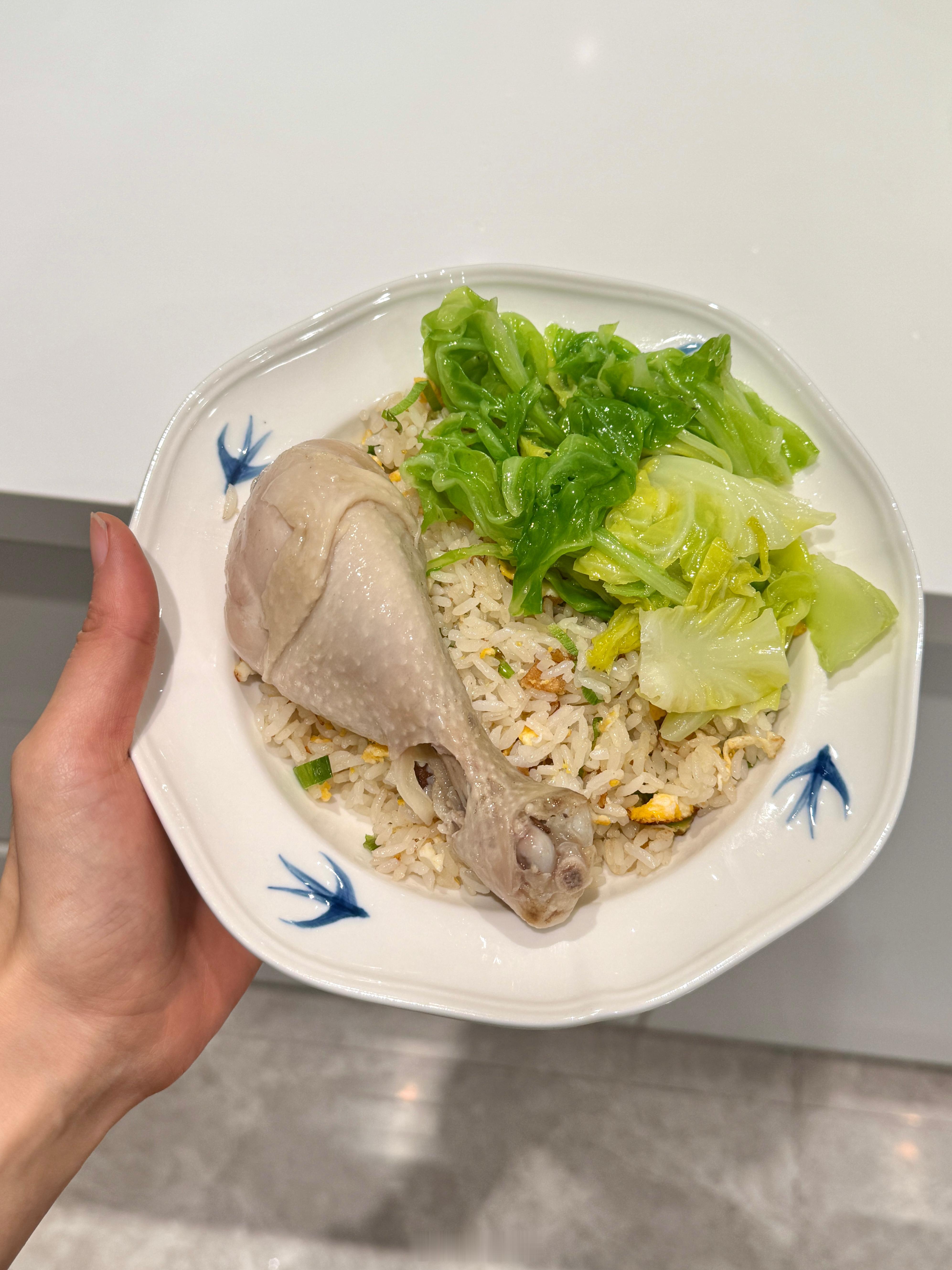 在家自制“沙县减脂餐”,椒盐鸡腿+烫蔬菜,今天奢侈一把,下面配的是蛋炒饭,均可“
