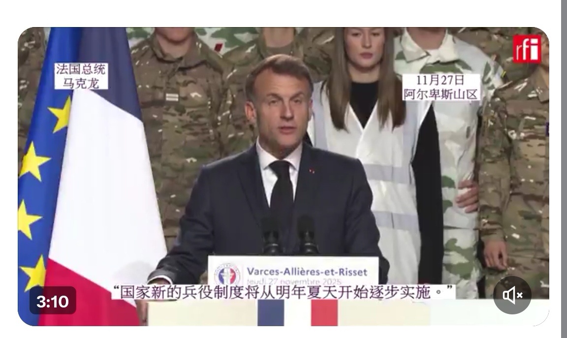 🔻法国总统马克龙周四宣布,法国将从明年起推行为期10个月的志愿兵役制度,主要面向18至19岁青年。首批约3000名志愿者将于明年夏季加入,计划到2030年扩展至1万人,到2035年达到5万人。此次举措旨在应对法国视为日益严重的俄罗斯威胁,同时增强军队预备役力量。🔻怎么?怕被速通巴黎了?