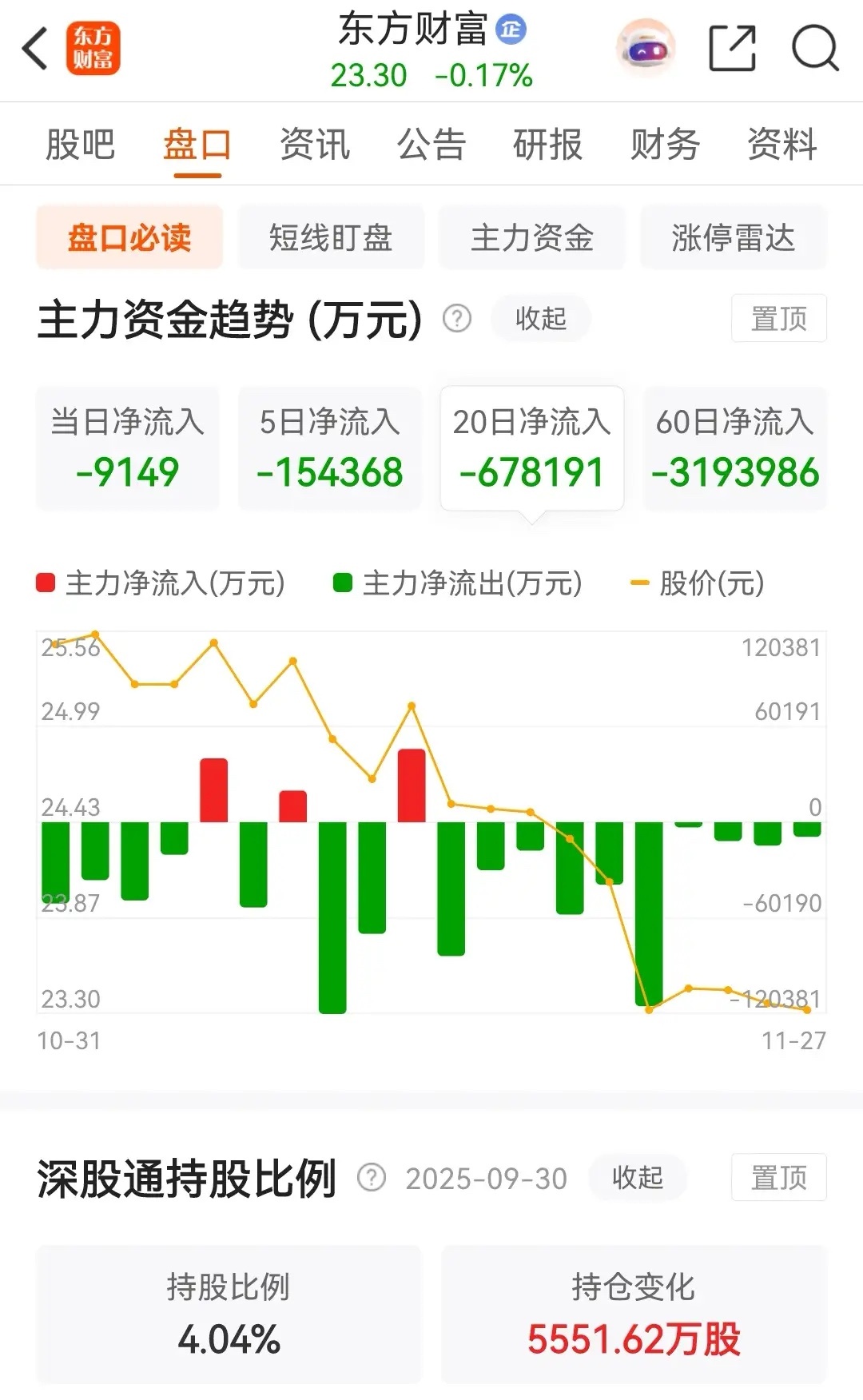 东方财富和中信证券冲高回落,东财则是连续10天被主力资金净卖出,而中信证券则是被