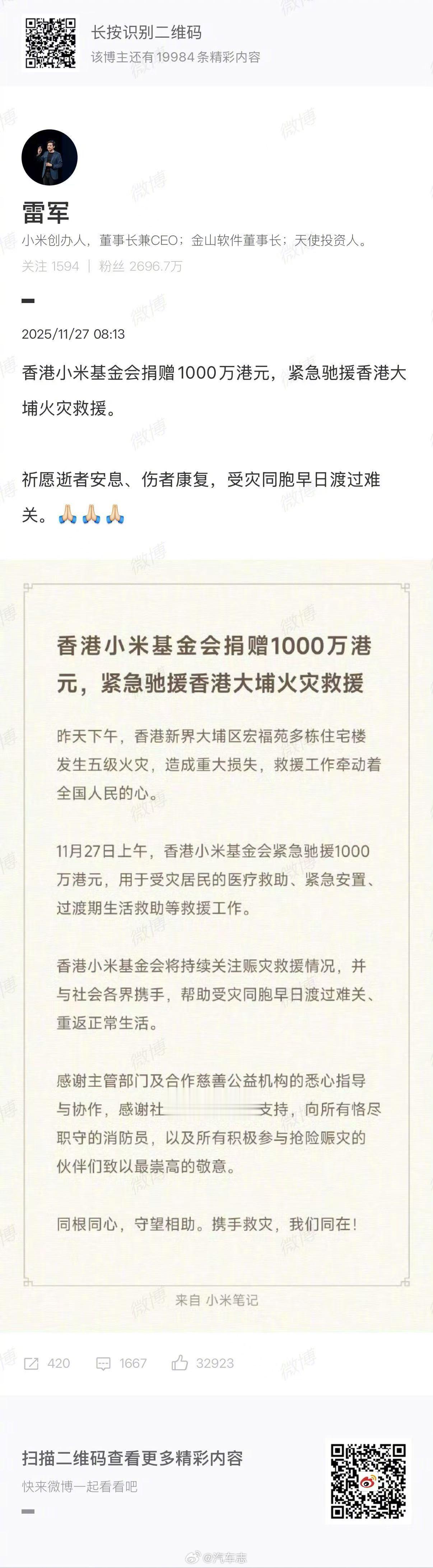 大厂驰援香港火灾,小鹏500万,小米、比亚迪1000万,下一家你觉得是谁?香港起火大楼内发现生还者香港火灾已有55人遇难