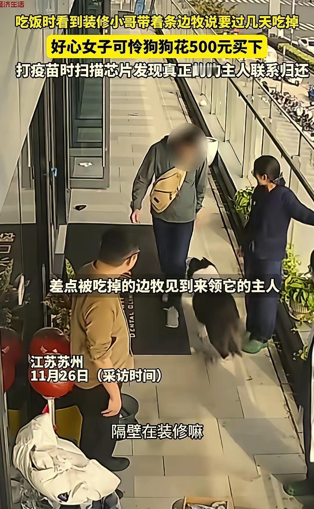 江苏苏州,一女子遇邻居装修,工人竟然把一条边牧拴在门口。女子好奇上前询问,工人却满不在乎的说:“这狗不想养了,打算吃掉。”女子心疼狗狗可怜,软磨硬泡花500元买了下来。隔天就带着去宠物医院打了疫苗,扫描它身上芯片时突然发现,狗主人根本不是那名工人! 边牧被拴在装修门口栏杆上,绳子勒得很紧,耷拉着尾巴缩在角落。工人蹲在一旁抽烟,说起吃狗的话,语气轻佻毫无顾忌。 女子看着狗狗可怜,跟工人反复商量。工人起初不乐意,说狗肉好吃,后来见女子愿意掏钱,才要价500元。女子当场转钱,解开绳子时,狗狗轻轻蹭了蹭她的手心。 隔天女子带狗狗去宠物医院,检查出营养不良,还有几处轻微擦伤。打疫苗时扫描芯片,直接跳出原主人信息,住址就在同一个小区。 原主人接到电话当场哭了,说狗狗半个月前走失,全家找遍小区周边,贴了几十张寻狗启事。工人是在小区角落捡到狗狗,见没人看管,就想占为己有,没人要就吃掉。 工人的行为既缺德又涉嫌违法,宠物狗是私人财物,擅自占有并意图食用,已经侵犯原主人财产权。我朋友家的猫曾走失,被餐馆老板捡走准备做菜,幸好及时找到才没出事。 女子的善良救了狗狗一命,但不是所有走失宠物都有这运气。小区管理有漏洞,部分装修工人素质堪忧。你遇到有人要吃别人的宠物,会出手制止吗?该怎么约束这种伤害宠物的行为?评论区说说你的看法。