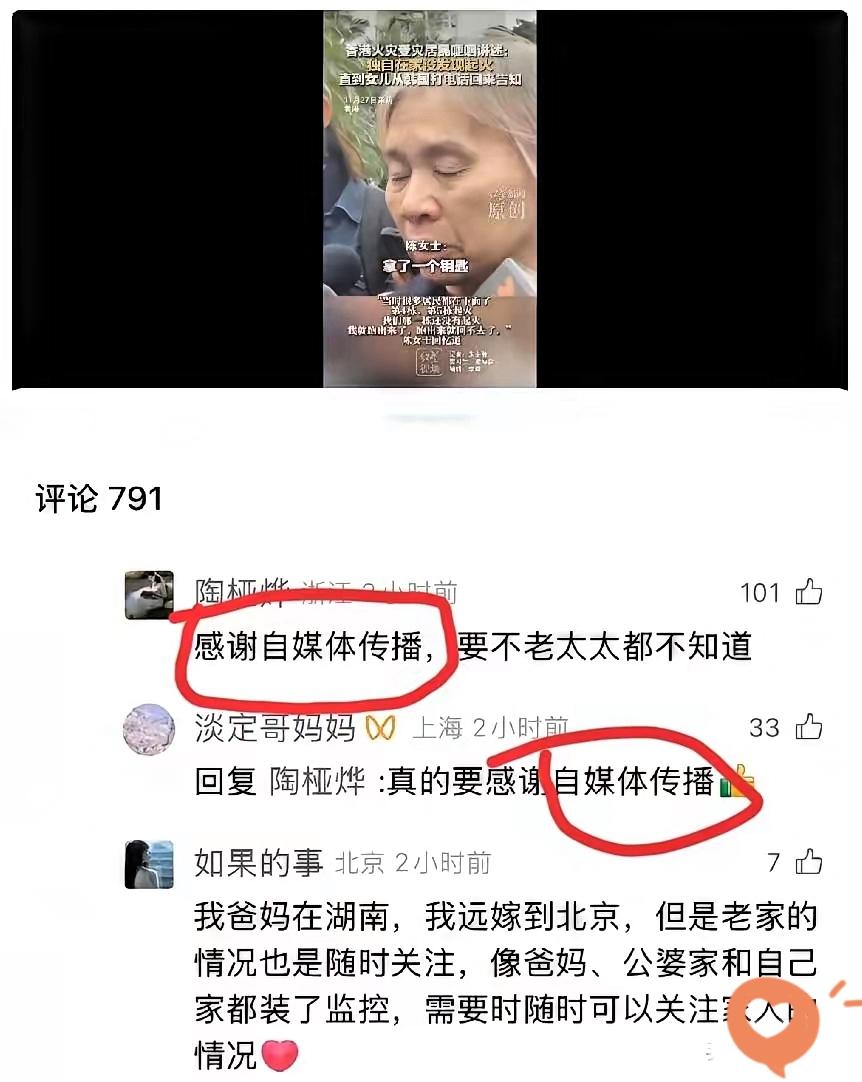 香港火灾里这个幸存故事,真的又好哭又发人深省!72岁老太太能逃过一劫,全靠远在韩国的女儿打了个“救命电话”。 老太太住的大厦之前在维修,她贴了窗纸没留意外面动静,连火警钟都没听见。女儿在韩国得知火情,赶紧打电话提醒她查楼下,她跑出去才发现浓烟已经蔓延,而其他住户还以为只是楼下单位起火,没意识到危险。 媒体早拍了起火视频、电视台也播了,可身处其中的人反而没察觉。这哪是简单的“幸运”?是亲情的牵挂+信息的传递,成了最硬核的救命符。 现在总说信息太杂,可关键时刻,一条及时的提醒、一则真实的消息,真能隔着千山万水护人周全。 你有没有被远方的消息帮过忙,或者提醒过别人的经历?来评论区说说~