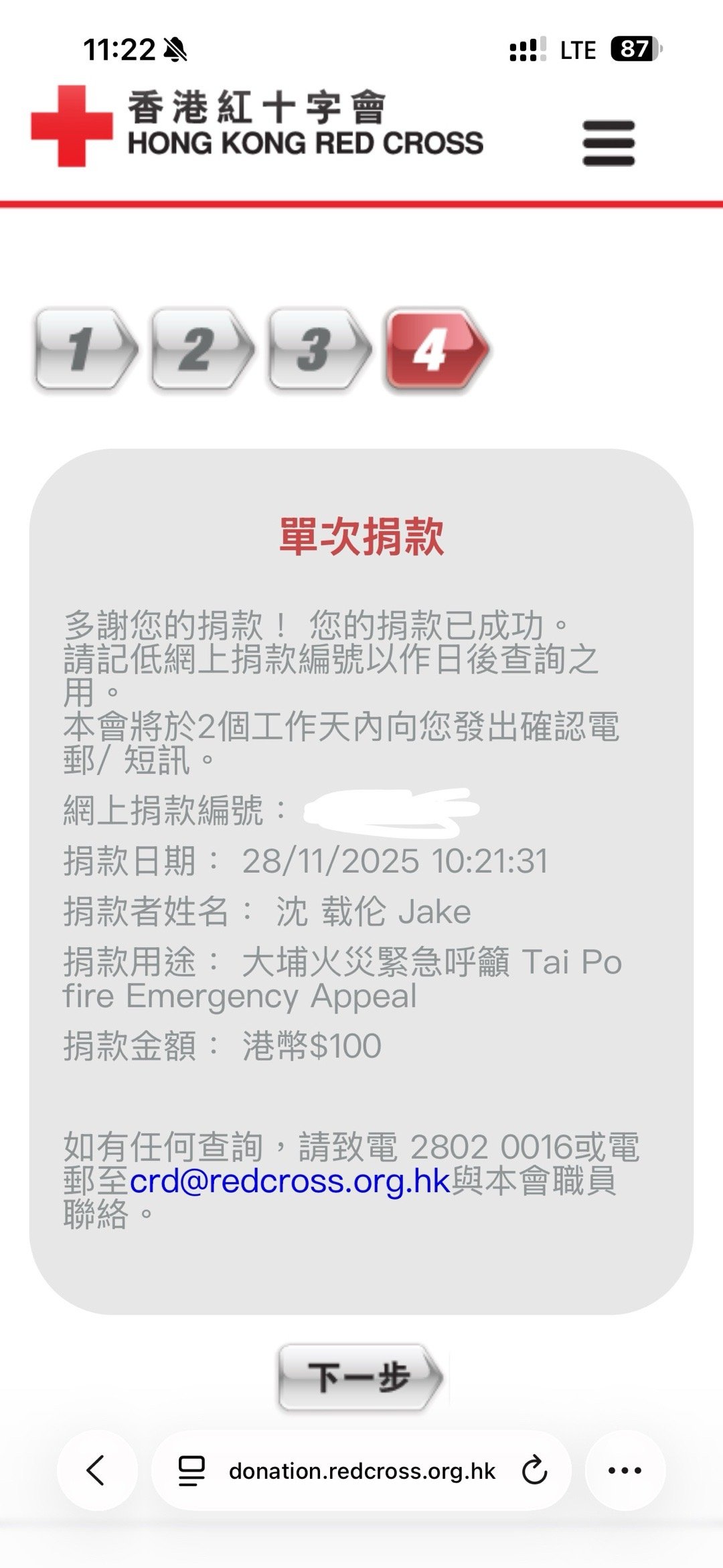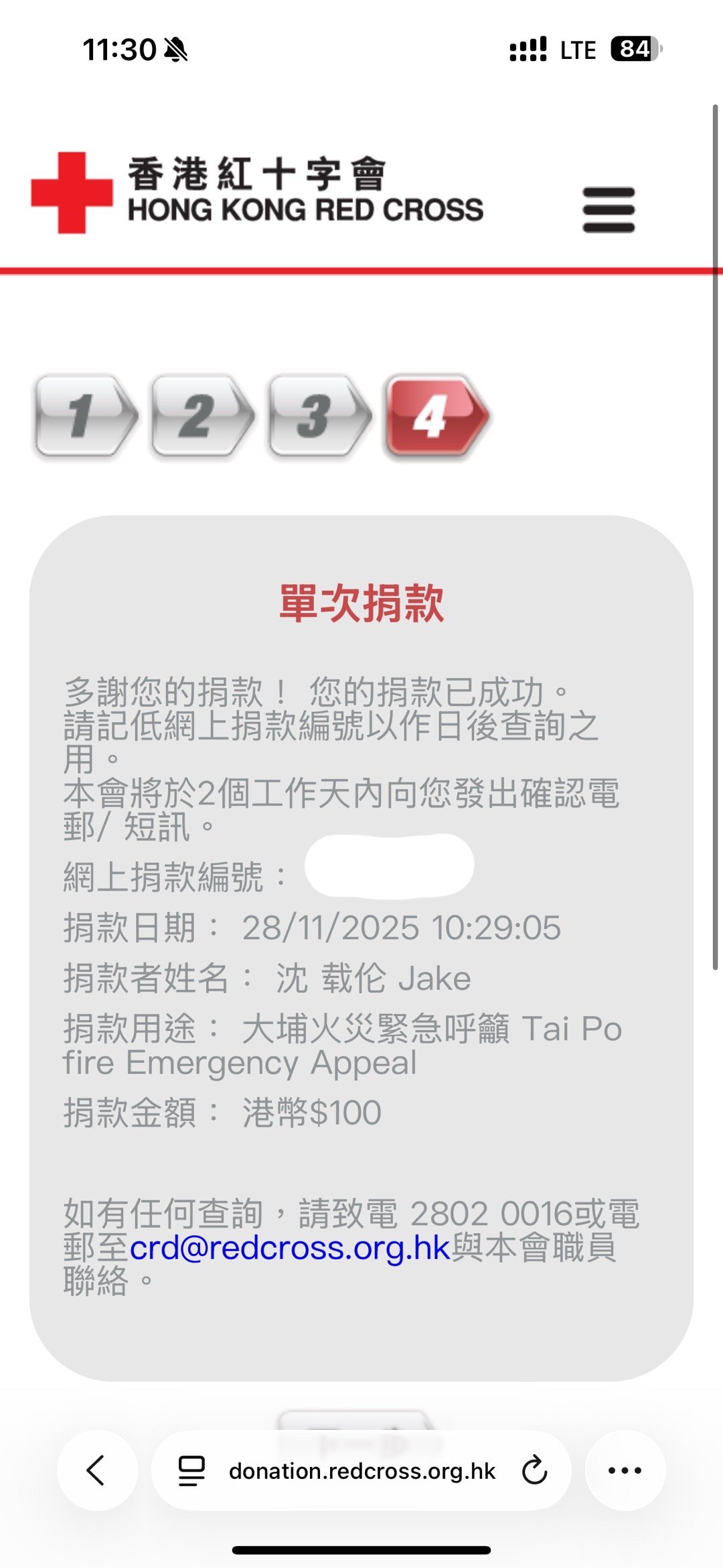 沈载伦 以Jakey和伦儿的名义向香港红十字会捐赠留证声明不存在博眼球行为,只希望大家多去关注此事