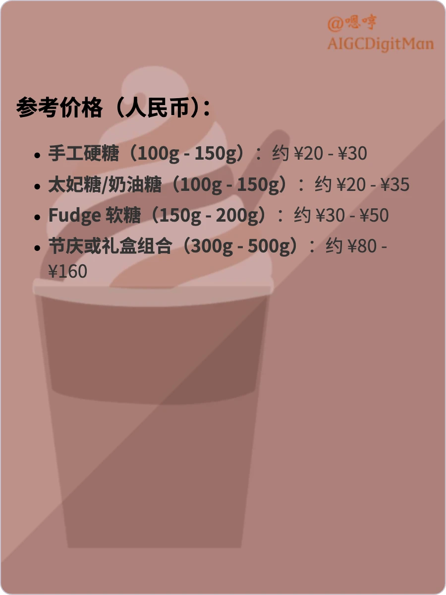 手工硬糖(100g - 150g):约 ¥20 - ¥30