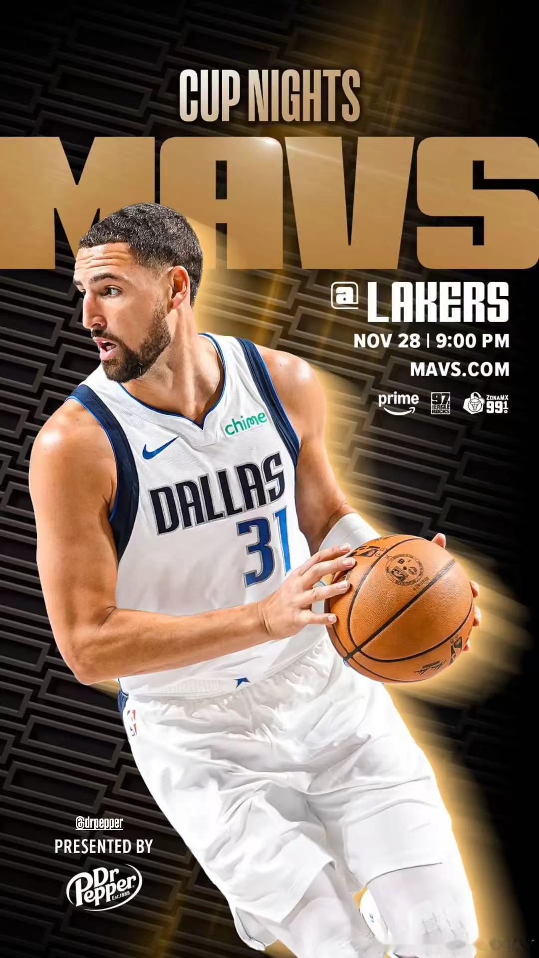 明日季中杯赛最后一场,独行侠客场挑战湖人。这海报有点帅了达拉斯独行侠独行侠克莱汤