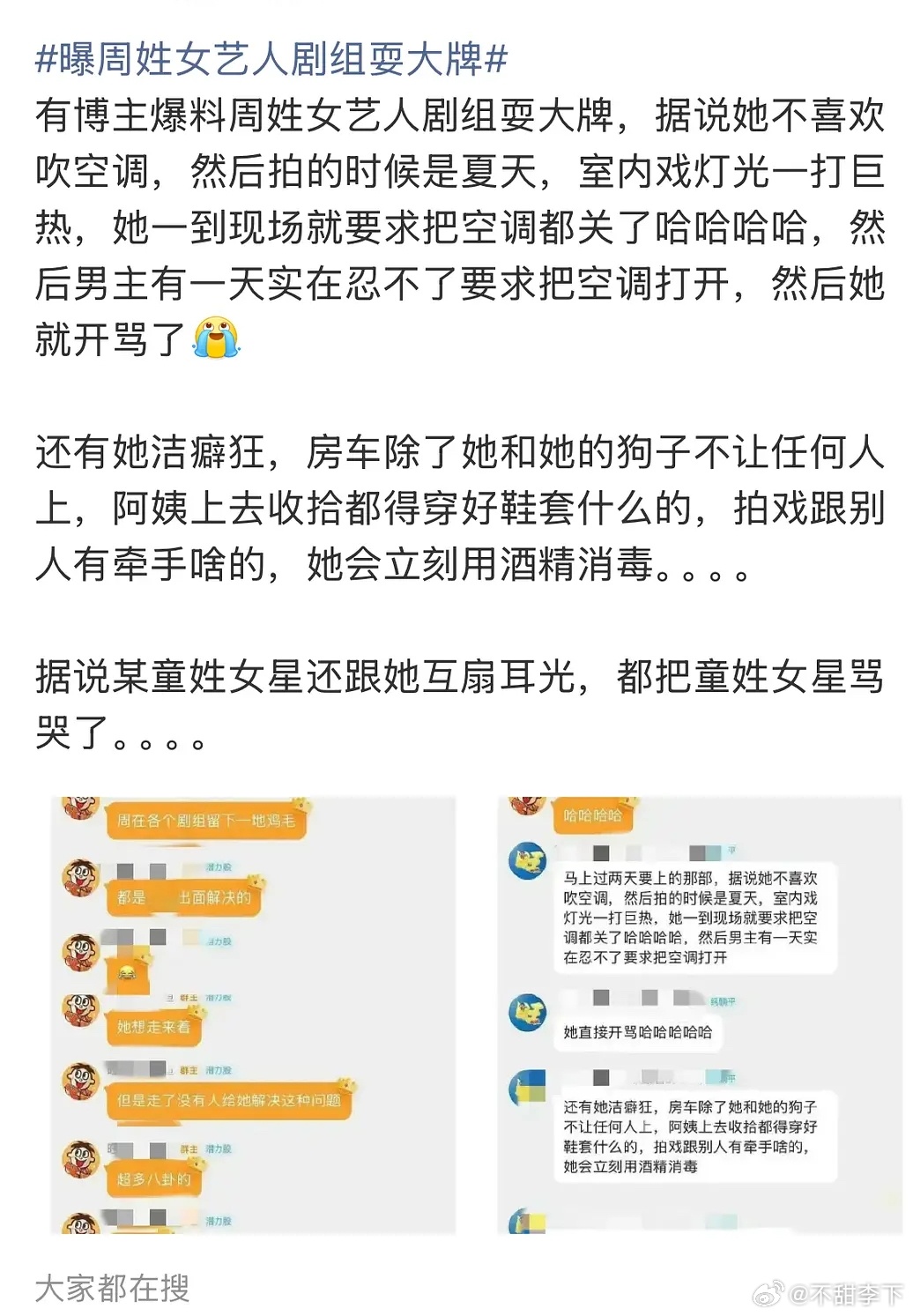 前面的还有点可信度,跟童瑶互扇耳光这种好像番茄小说啊 周姓女艺人 剧组耍大牌