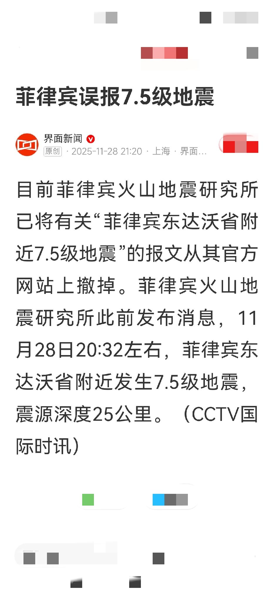 这一次菲律宾太奇葩了,这么大的事竟然是“误报”,误报者该承担什么责任呢? 刚刚多家媒体转载来自菲律宾的报道,说11月28日晚上8点多菲律宾东达沃省附近7.5级地震,竟然是误报,而误报者竟然是菲律宾的官方网站,也就是菲律宾火山地震研究所。 虽然现在该网站已经将这条误报消息撤掉了,但是这么大的乌龙事件是不是带来什么影响了?误报者要不要承担什么责任呢?