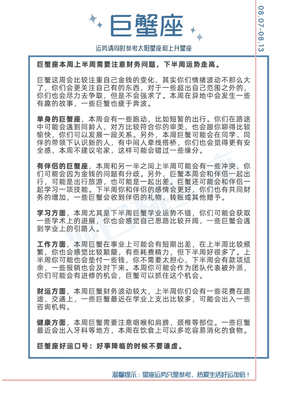 『白桃星座周运』2023.8.14—8.20