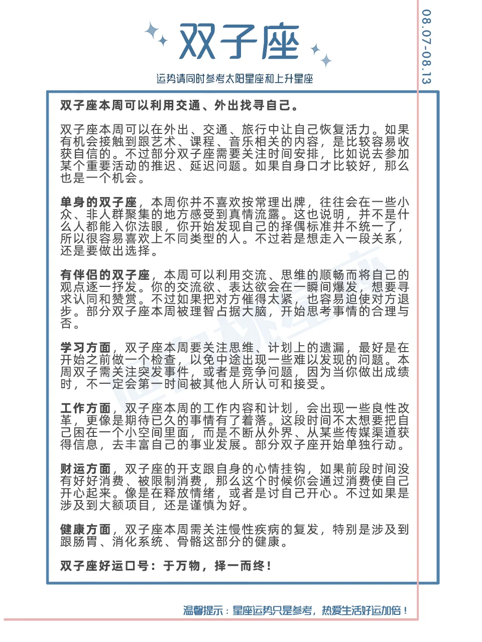 『白桃星座周运』2023.8.7—8.13