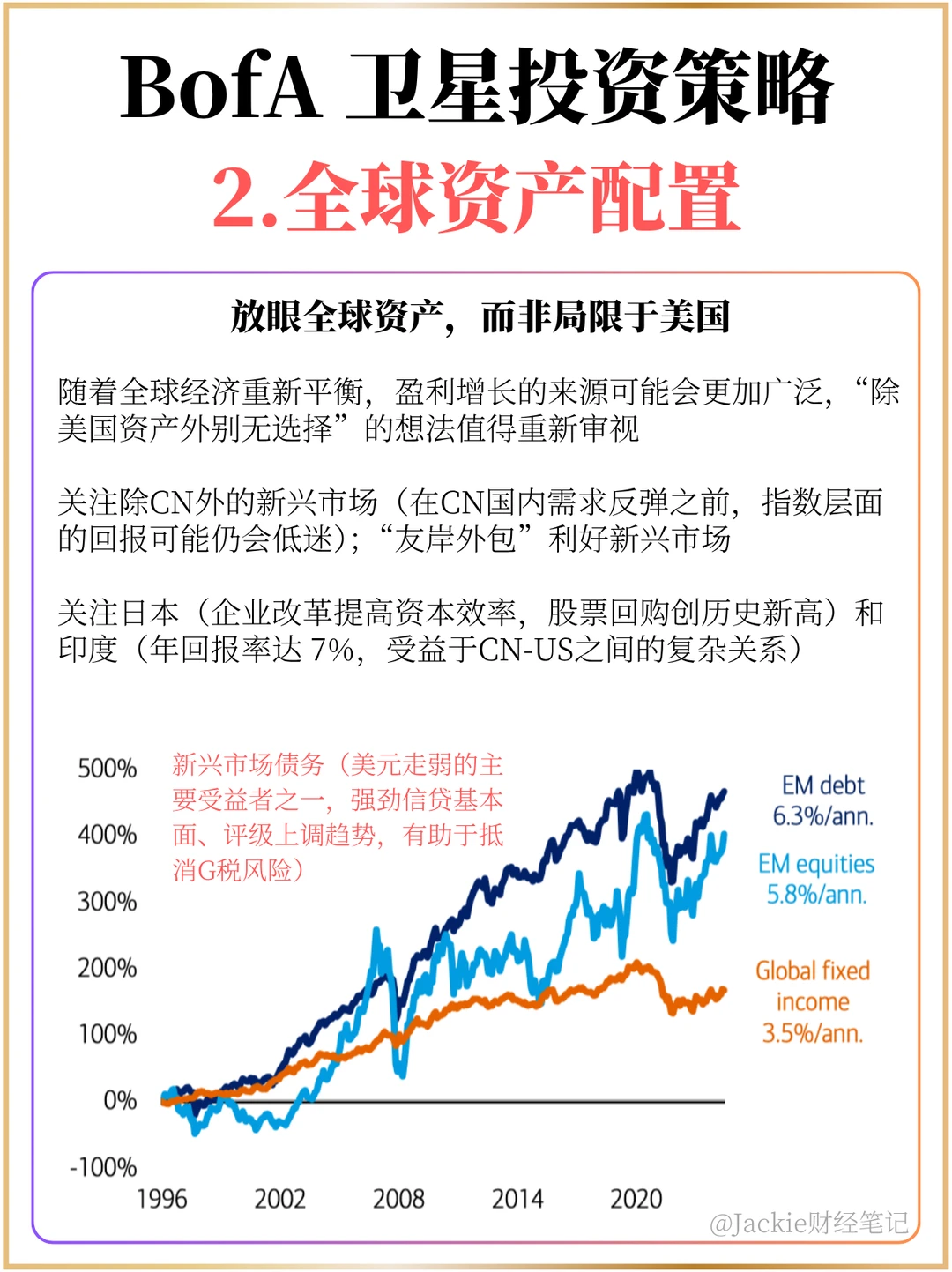 ▪️新兴市场债务:美元走弱背景下新兴市场债务因信贷基本面强劲、评级上调趋势,分散美债利率风险。