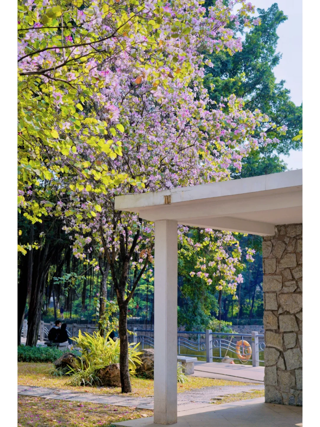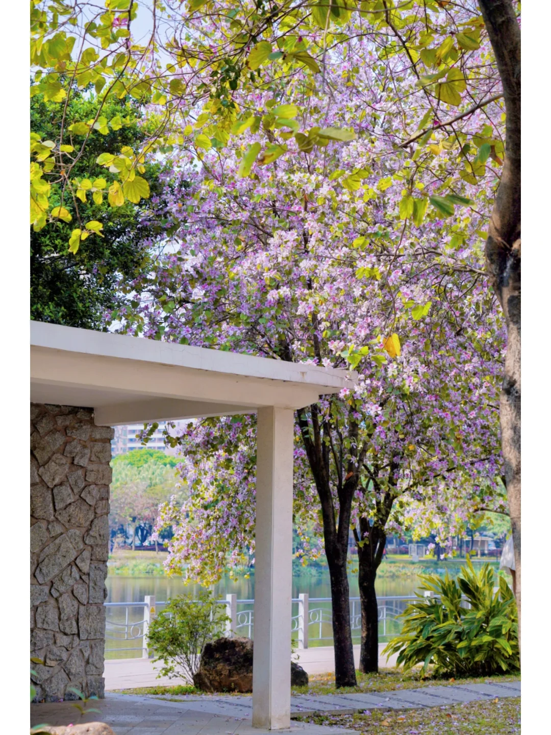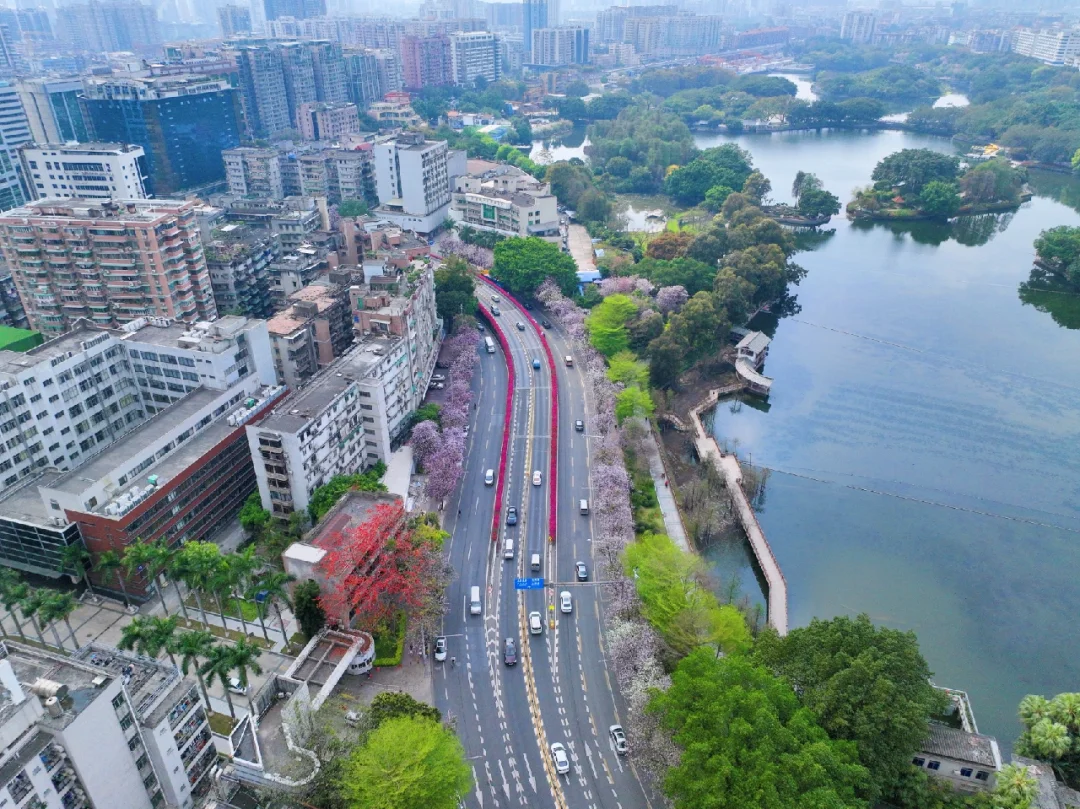 20°的春日PLOG 生活在花城广州 最幸福的莫过于赏花无需去公园 而是在大街小巷 都有可能邂逅一片花海 🌸 🌸 今天经过人民路 两旁人行路上是开满宫粉紫荆花的林荫道 马路中间的高架桥上 则是三角梅构筑的空中护栏 偶尔轻佛过的风中夹着淡淡花香 🌸 🌸 沿着人民路走到流花湖公园的“水上白宫” 湖边草地上的宫粉紫荆开得正盛 有时间坐一会 吹吹风,看波光粼粼的湖水发会儿呆