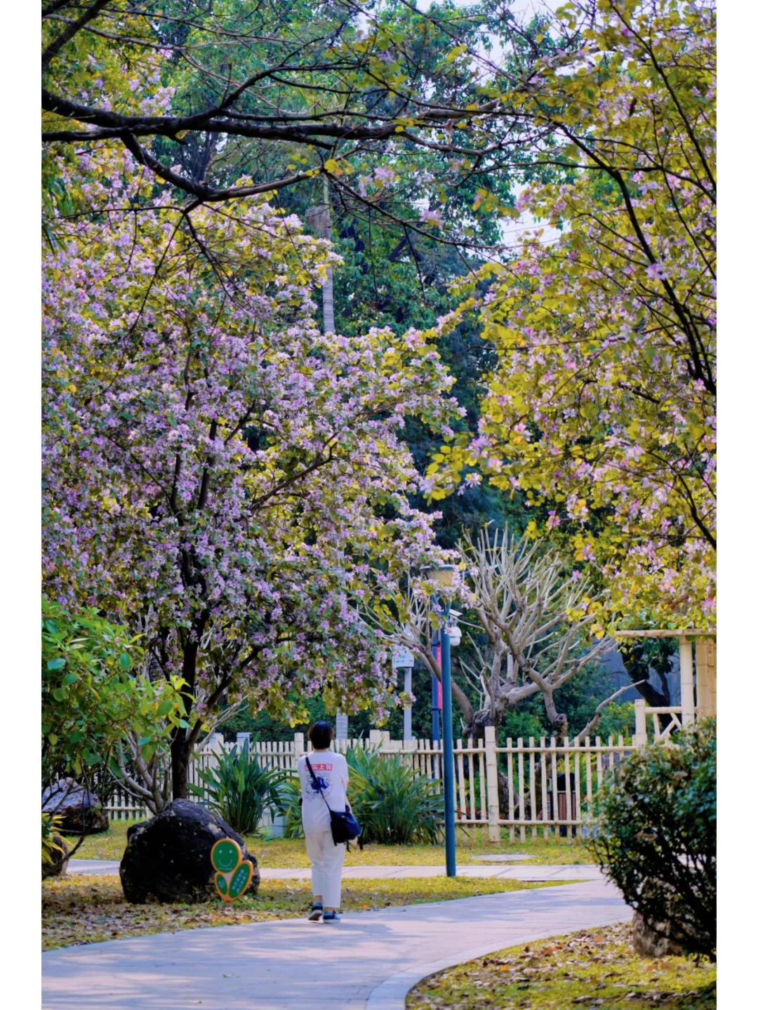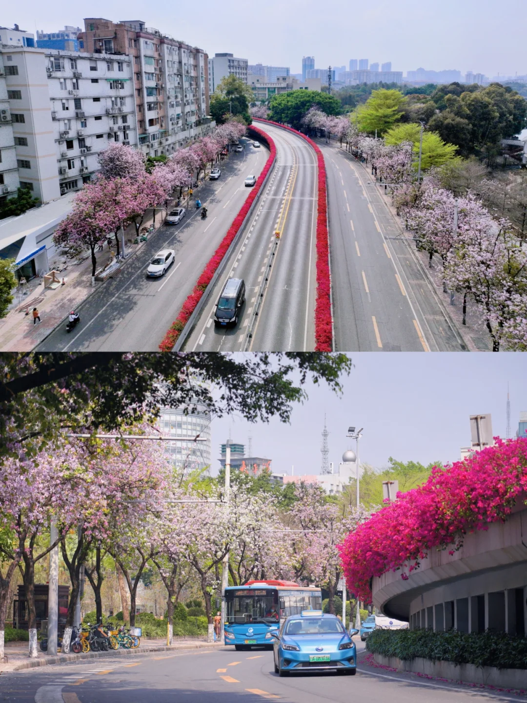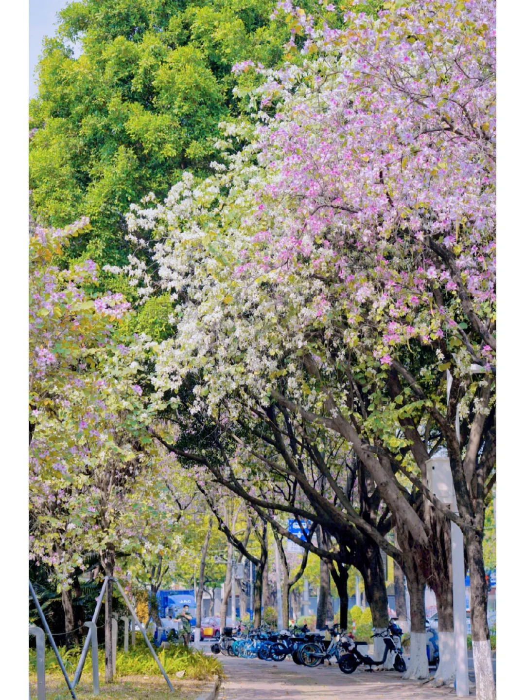 20°的春日PLOG 生活在花城广州 最幸福的莫过于赏花无需去公园 而是在大街小巷 都有可能邂逅一片花海 🌸 🌸 今天经过人民路 两旁人行路上是开满宫粉紫荆花的林荫道 马路中间的高架桥上 则是三角梅构筑的空中护栏 偶尔轻佛过的风中夹着淡淡花香 🌸 🌸 沿着人民路走到流花湖公园的“水上白宫” 湖边草地上的宫粉紫荆开得正盛 有时间坐一会 吹吹风,看波光粼粼的湖水发会儿呆