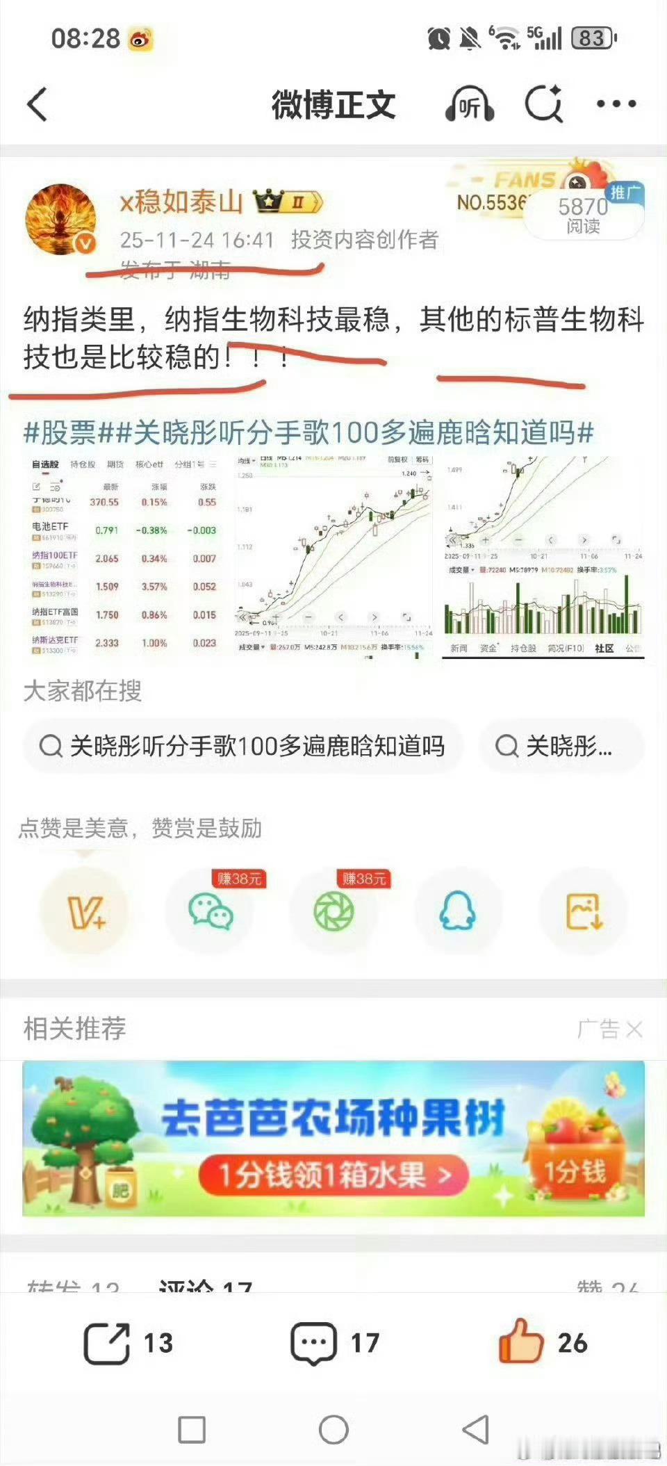 周一周二提示多次,坚定持有纳指生物科技etf,标普生物科技etf,纳指科技,纳指100etf那些,还在涨啊!!年前搞几波这种,踏实搞个分仓几十点,过年了!!!黄金关晓彤听分手歌100多遍鹿晗知道吗