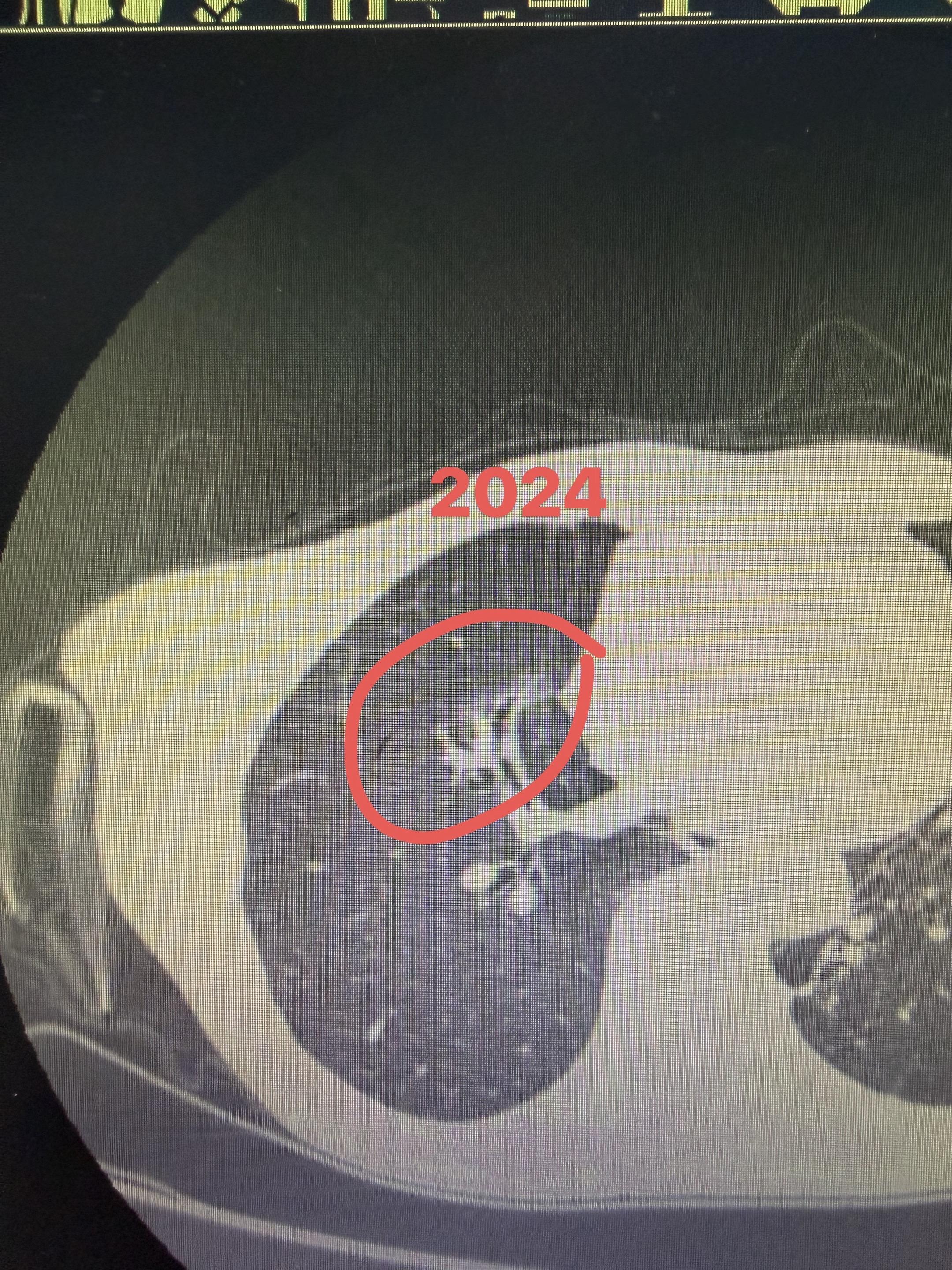 奇奇怪怪的胸腔内东西。其实是个胸壁慢性炎症形成的结石。