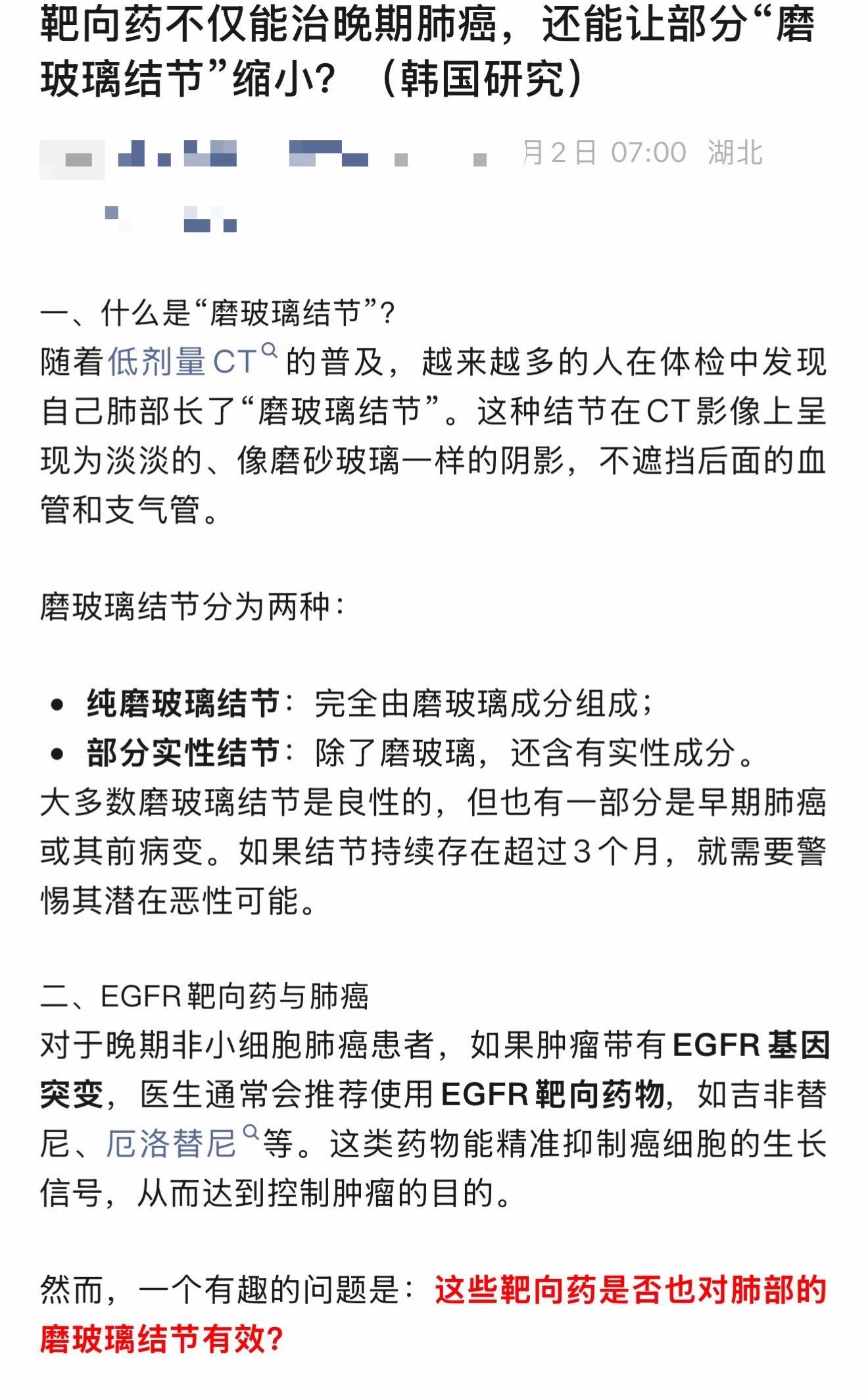 靶向药可以让部分磨玻璃缩小。的确,我们也观察到,靶向药可以让部分磨玻璃...