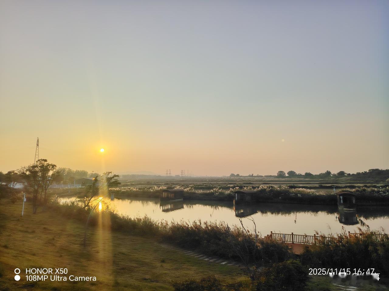 晒图笔记大赛11月16日长江岸边晨练赏日出