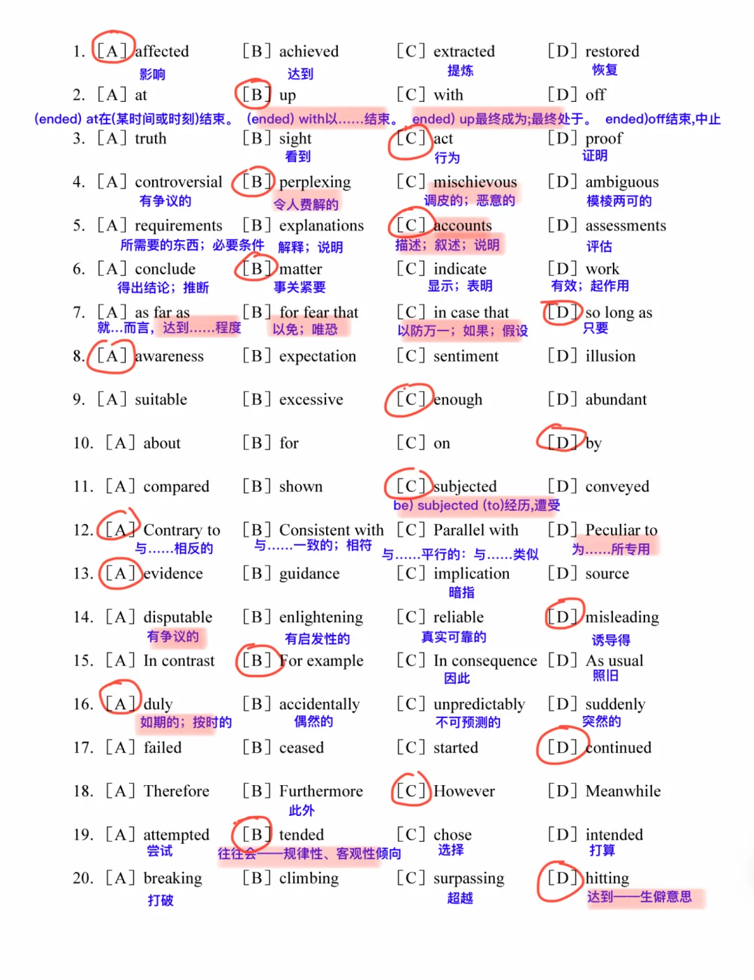 •step3:文意角度分析句子,推测空格含义,找到最佳答案