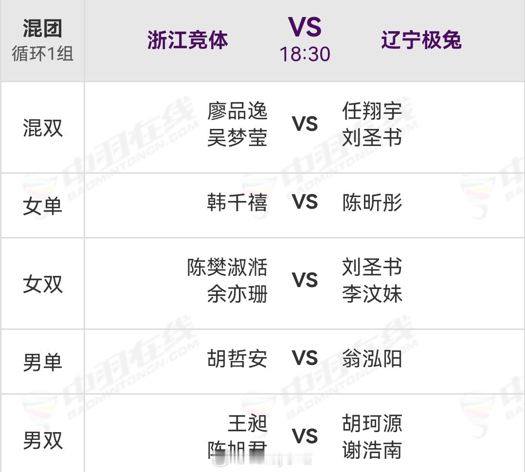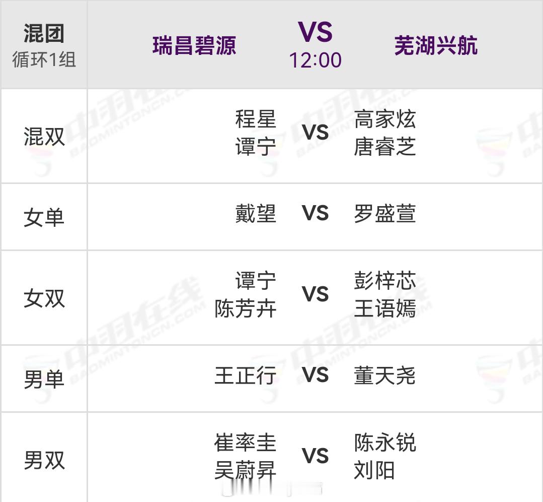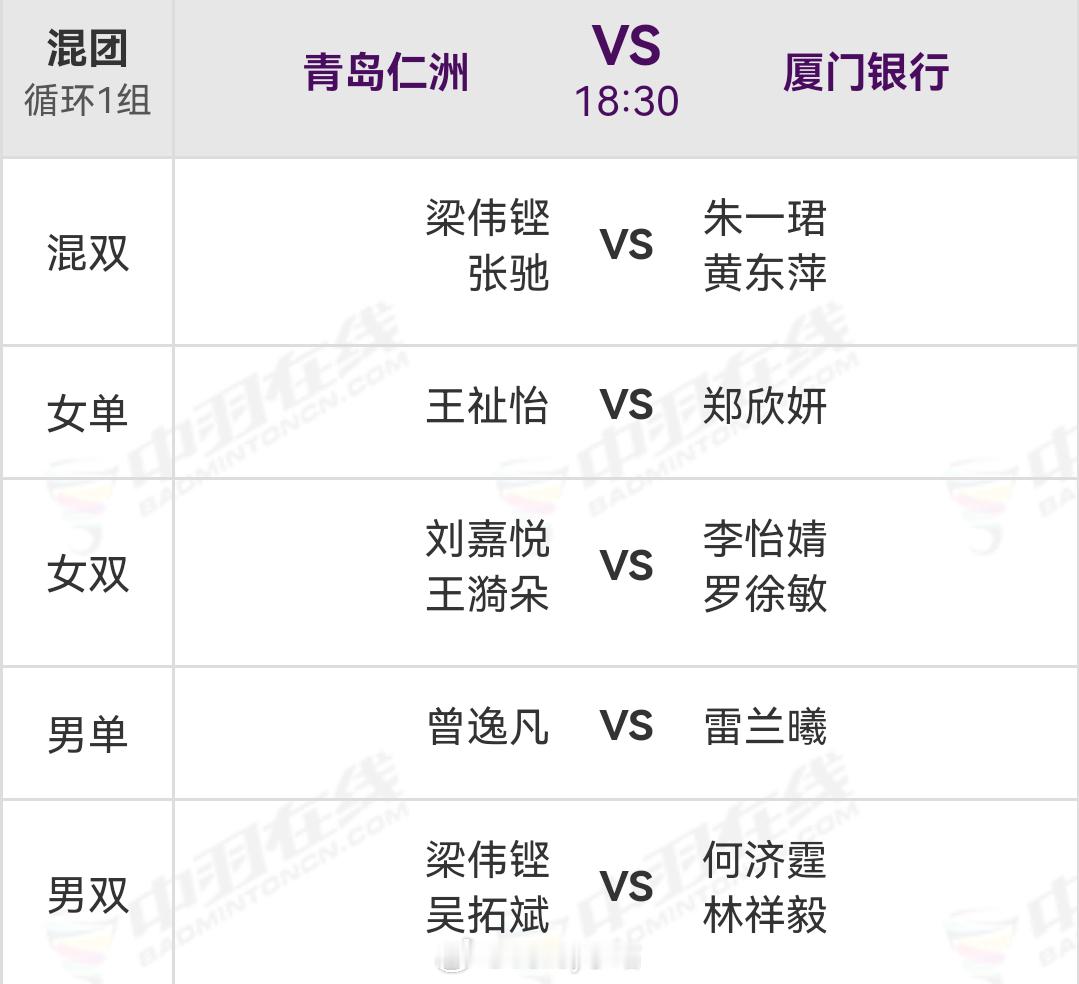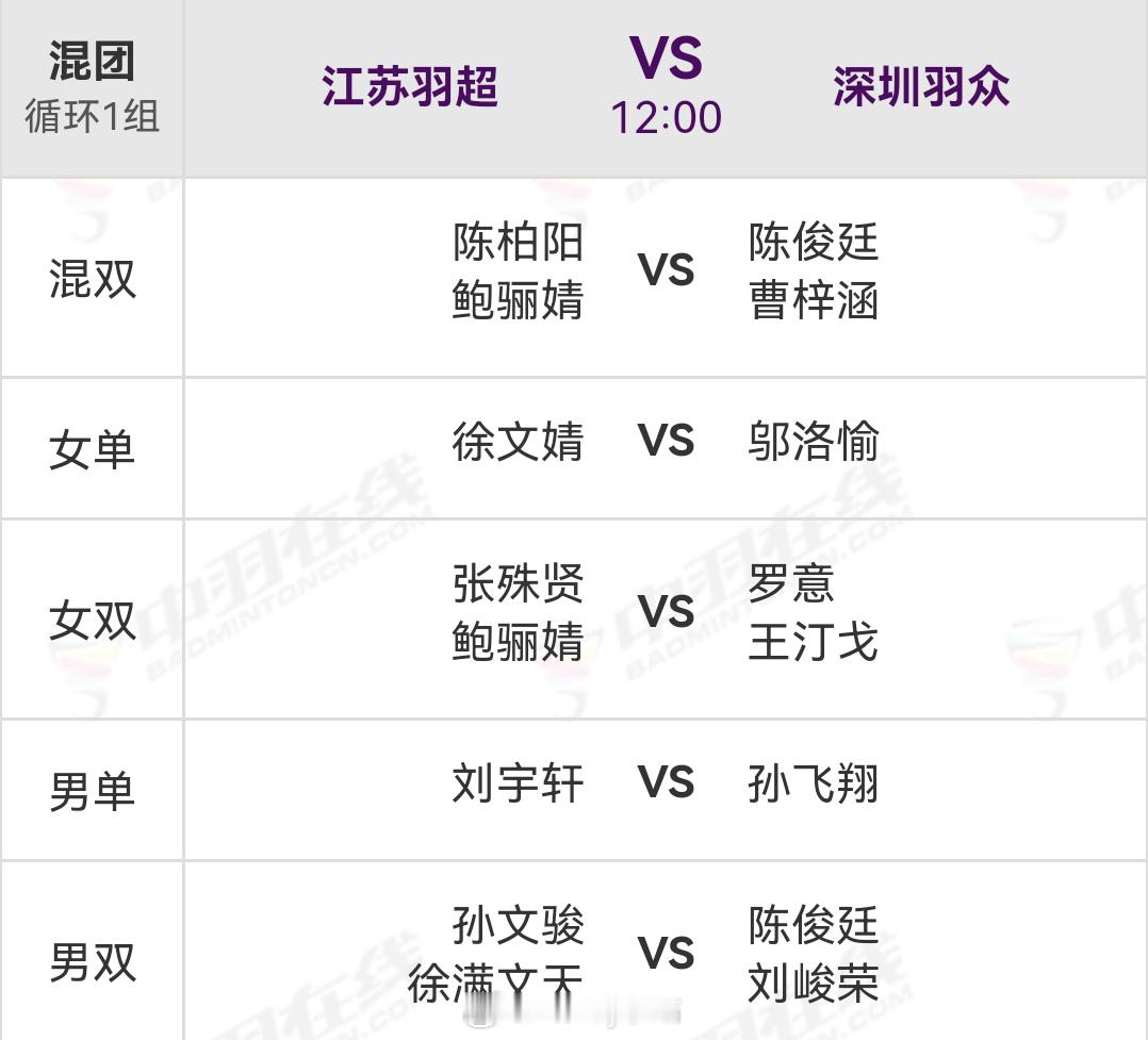 羽超联赛 今日赛程对阵安排12:00瑞昌碧源vs芜湖兴航江苏羽超vs深圳羽众18:30青岛仁洲vs厦门银行浙江竞体vs辽宁极兔