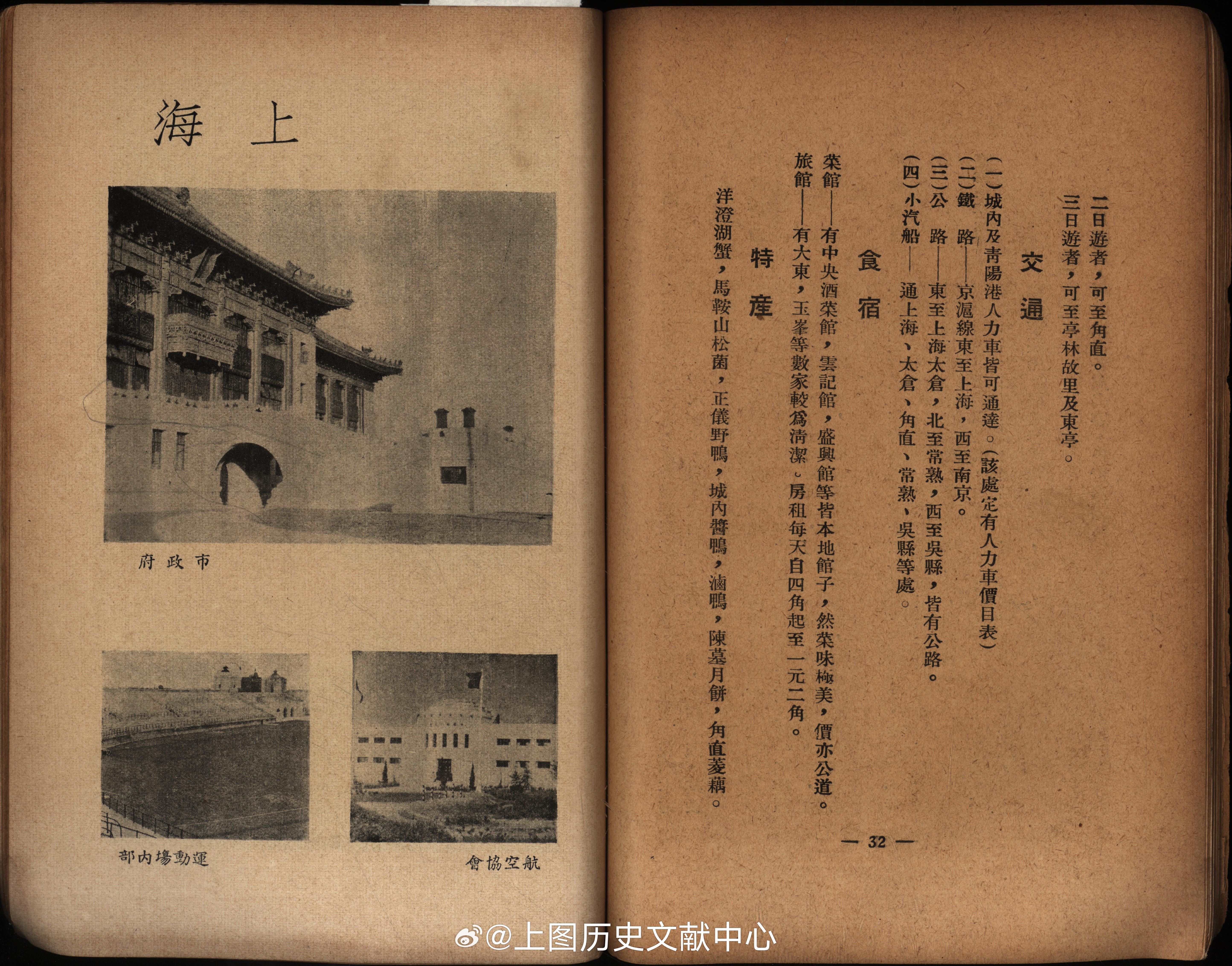 摩登行旅——近代长三角旅游文献展《京沪沪杭甬两路沿线名胜》上海中国旅行社出版本书分南京、镇江、武进、无锡、吴县、昆山、上海、松江、杭州、嘉兴、绍兴、宁波等12部分,介绍各城市名胜、交通、食宿、特产,游程。各部分均附风景图片数张。