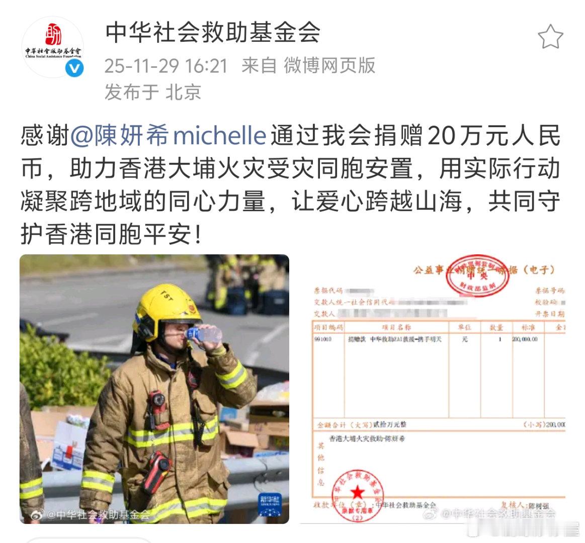陈妍希向香港捐款20万驰援香港人美心善的姐姐,共克时艰,共祝平安🙏🏻