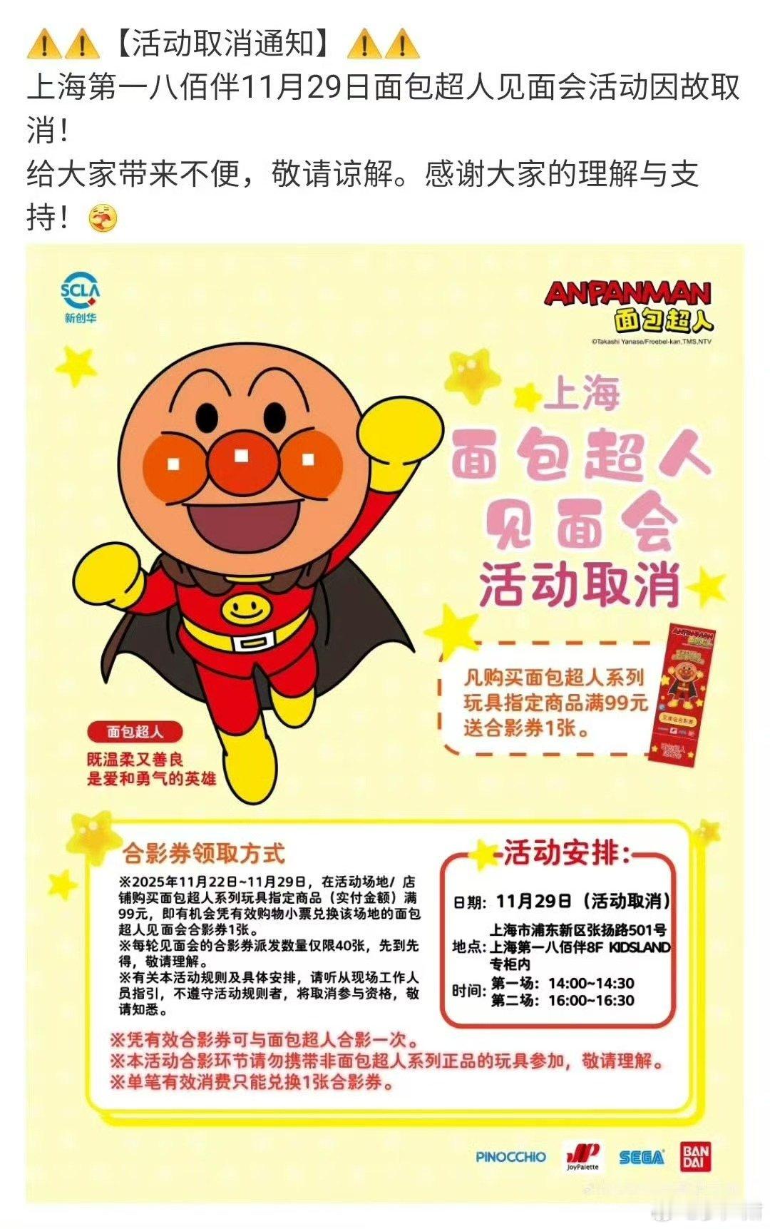 多位日本艺人演出被取消之后,面包超人见面会也取消了。