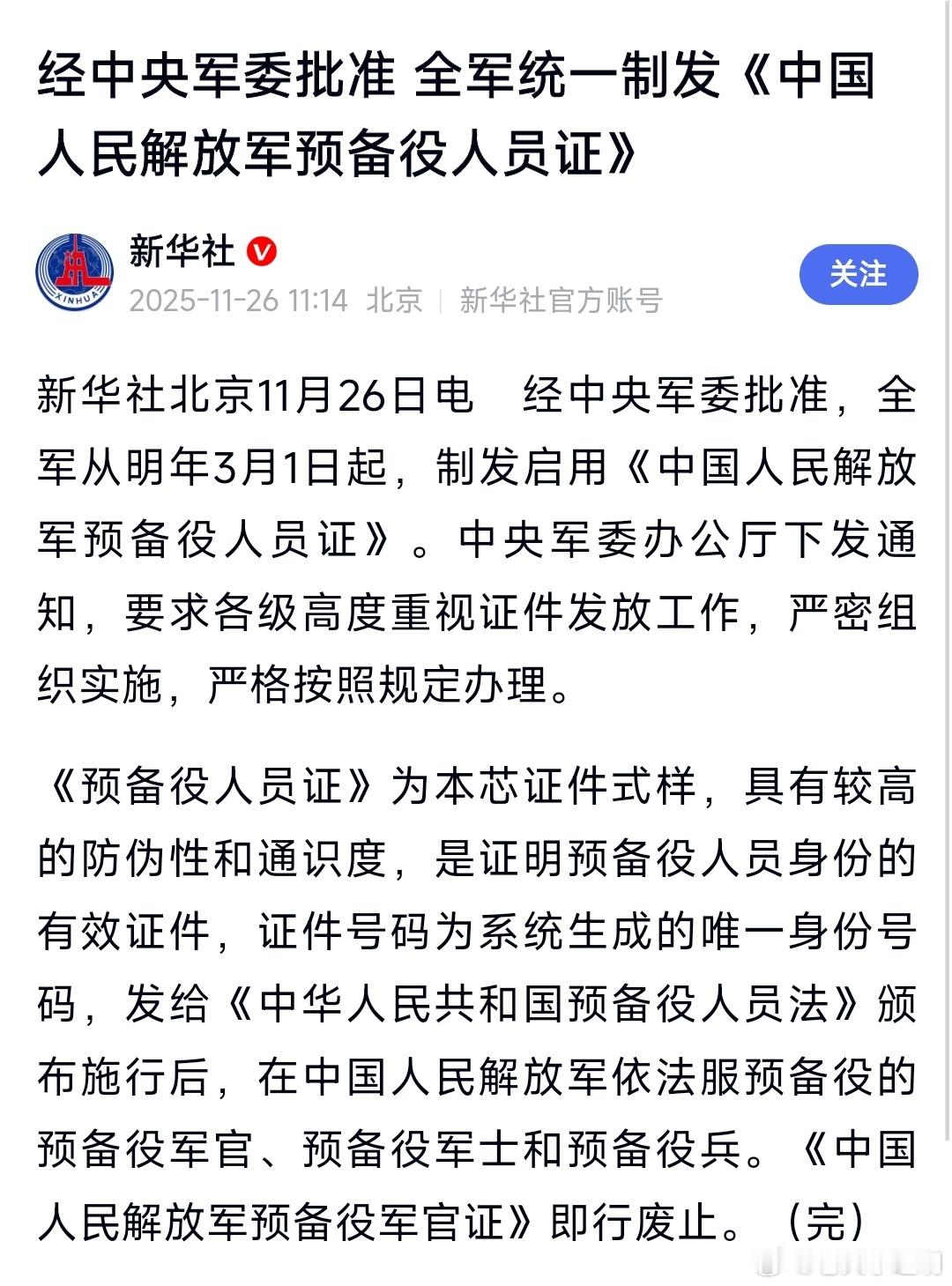 预备役人员证要来了以前有多少预备役人员没有发过证?根据《中华人民共和国预备役人员法》,属于预备役人员的,明年3月1日起开始发放预备役人员证了。退役军人