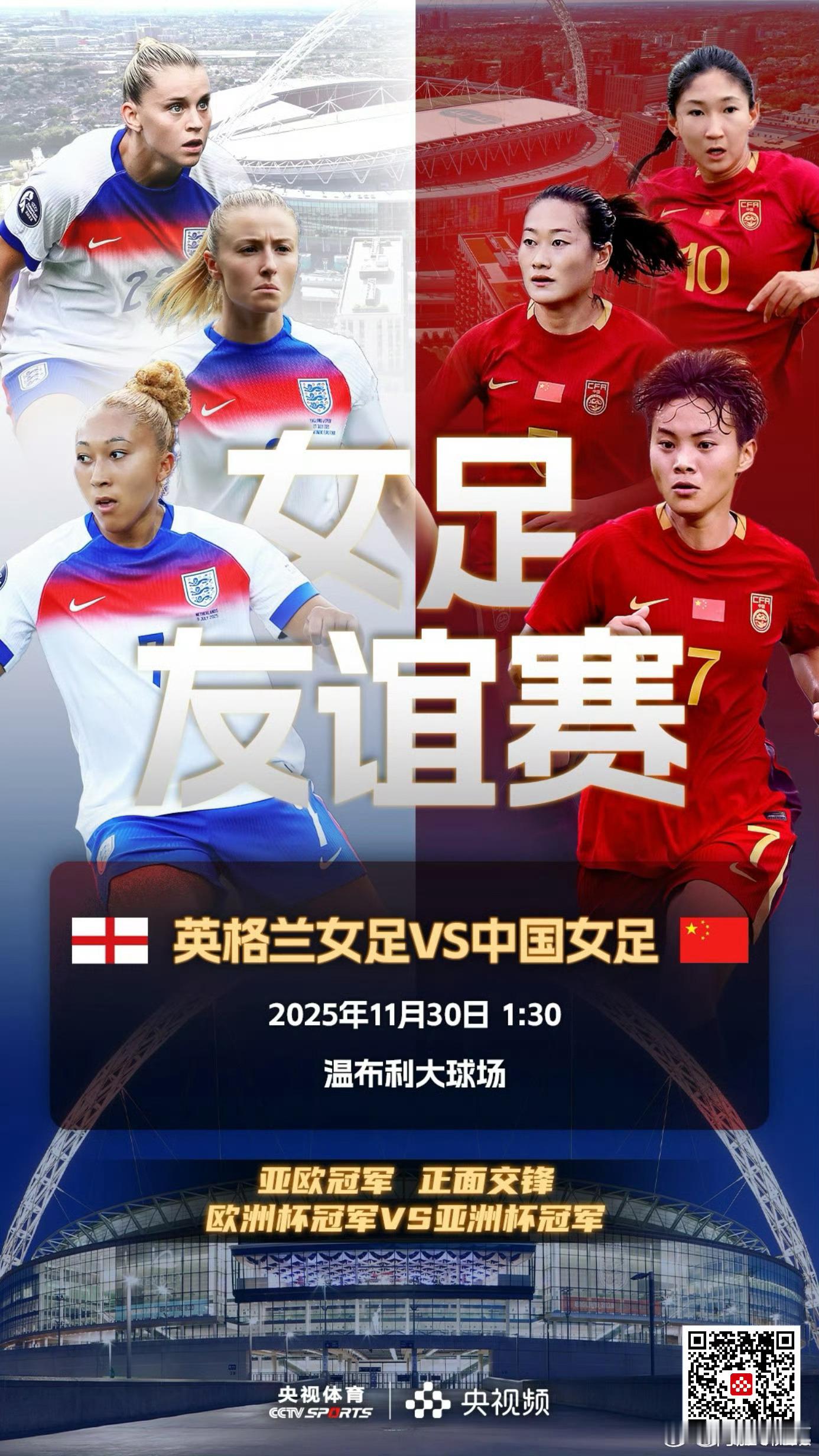 明天凌晨1:30,中国女足在伦敦温布利大球场对阵英格兰女足,央5直播 上海
