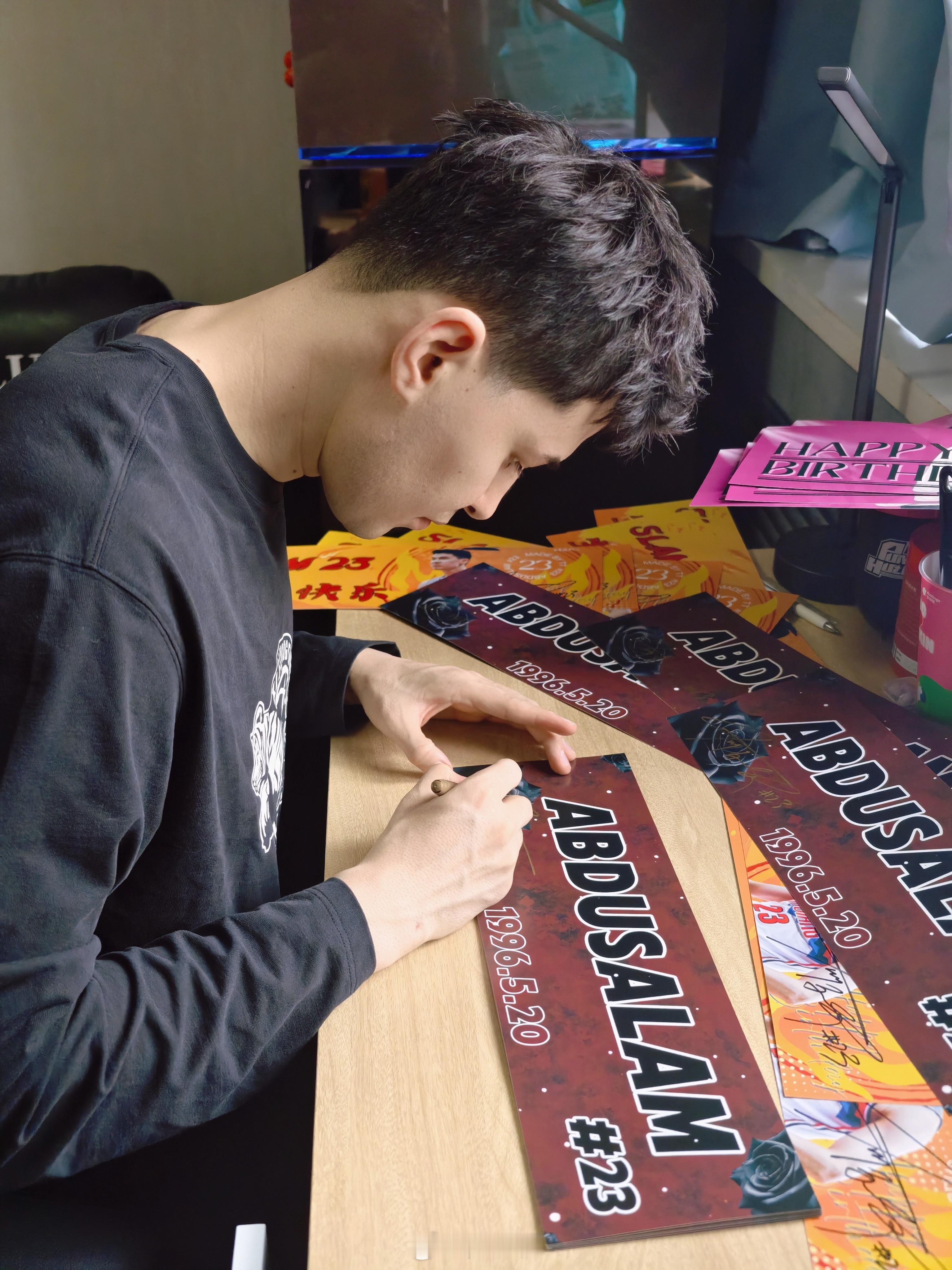 给生日限定款手幅签名~想要的鹏友举举手,我看看有多少阿不都沙拉木新疆男篮小卢篮球世界