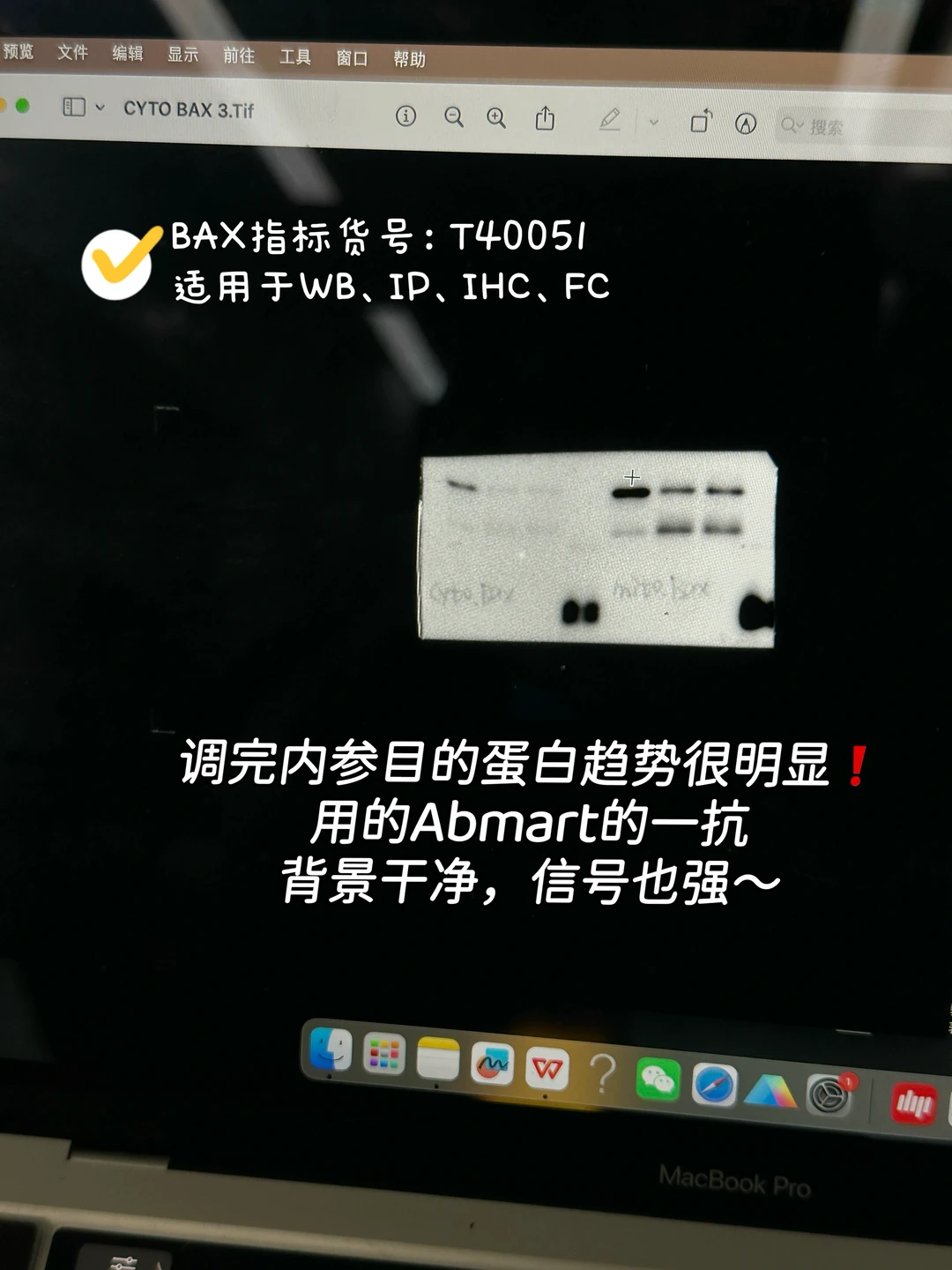 内参齐后就可以看目的蛋白趋势啦~图上做的指标为BAX,趋势很明显🤣用的Abmart家的一抗试用跑出来的!