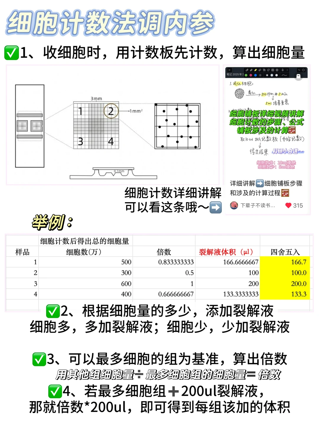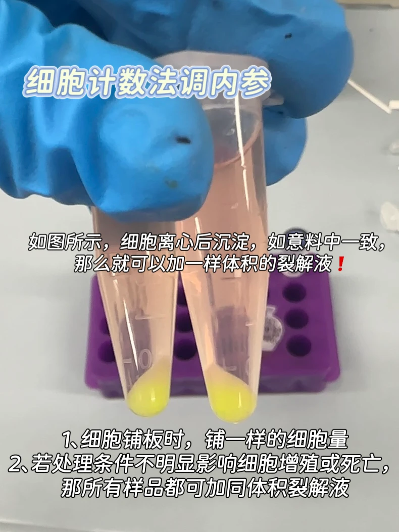➡️若处理条件明显抑制或促进细胞增殖,或诱导细胞死亡,那收细胞之前可以给每个孔的细胞计数,然后根据细胞量加不同的裂解液,这样做出来内参基本也是齐的~计算方法看P5
