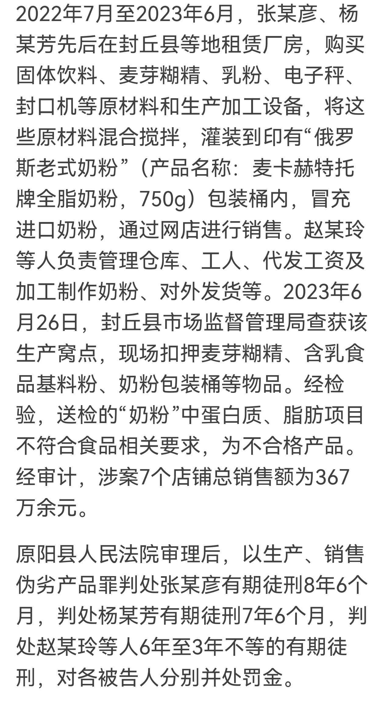 看了郑州假奶粉“奶精加淀粉”的操作,真的有被震惊到,2025年居然还有人大量生产伪劣奶粉,各大电商平台还均有售,再次暴露出平台的监管审核责任缺失。时事满谈反诈连连看经查,该团伙用“奶精+淀粉”的简单配方冒充品牌奶粉,通过各大电商平台向全国销售,3名核心成员自产自销金额达数百万元。这类假奶粉通常不含乳成分,仅以植脂末、麦芽糊精、淀粉、香精等调配出“奶味”,成本极低,营养几乎为零,婴幼儿长期食用会导致营养不良、发育迟缓,甚至存在重金属或三聚氰胺等非法添加风险。除了这起造假奶粉案,2022年5月,郑州南郊某万货城周边查处了一个专门生产、销售假冒奶精和奶粉的黑窝点,涉案金额超过500万元。2023年,河南高院将“黑作坊用固体饮料、麦芽糊精、乳粉等原料混合灌装,冒充俄罗斯进口奶粉”的案件列为食品安全犯罪典型,其中也提到了郑州及周边地区存在类似犯罪链条。奶精加淀粉做成假奶粉销往全国