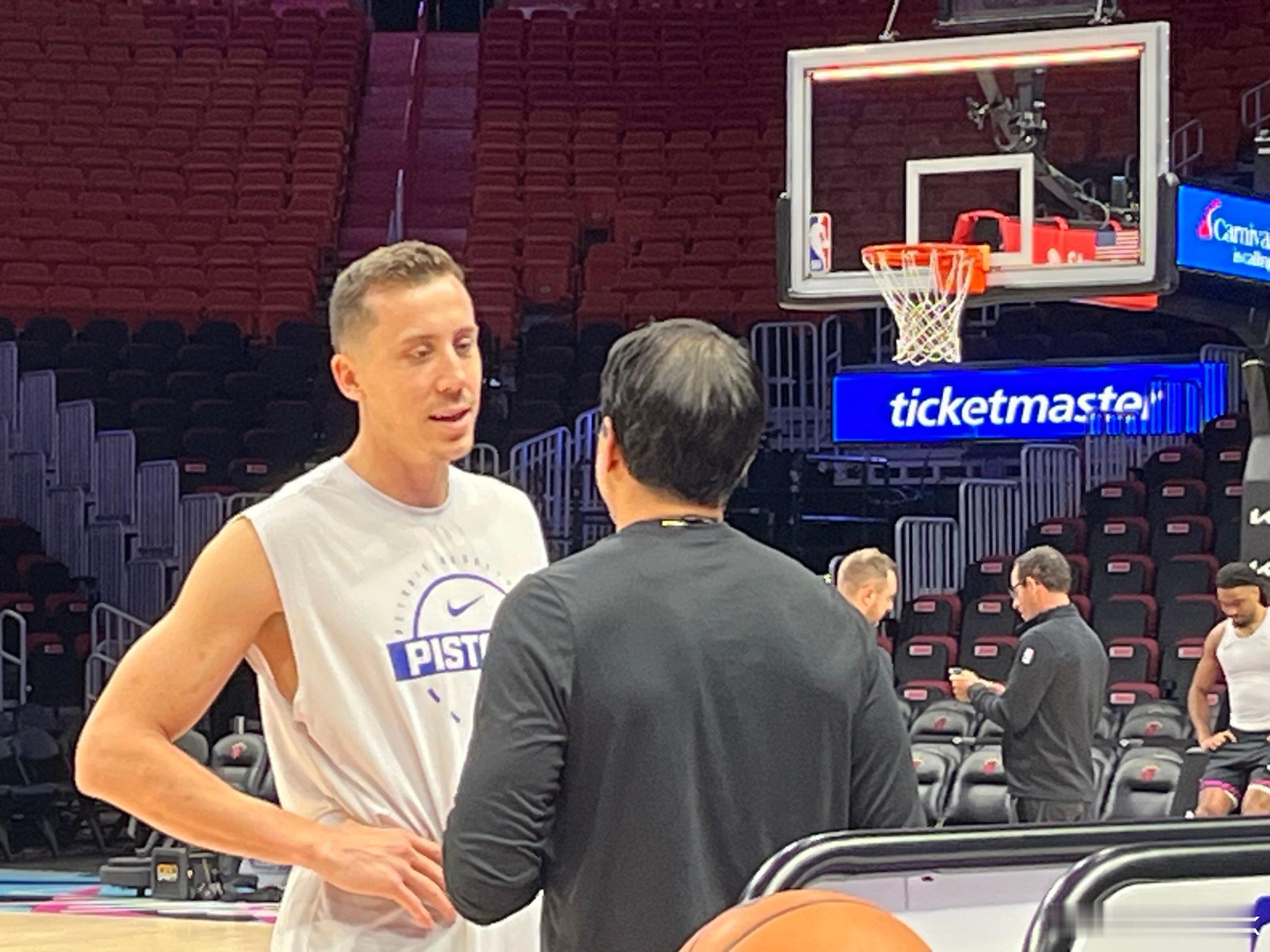 伯乐与千里马,邓罗赛前和斯波教练交流活塞vs热火新赛季篮不住