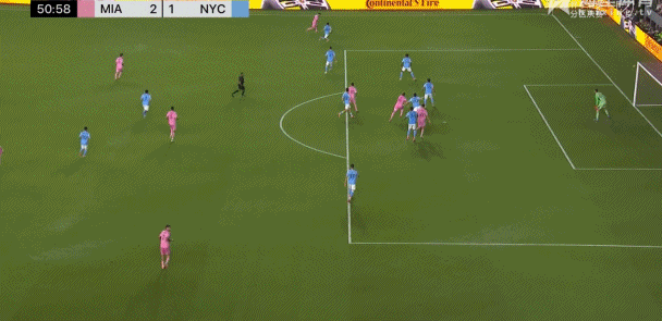 梅西吸引防守球员注意力后助攻马特奥破门!!!3比1!!!迈阿密国际3比1纽约城迈