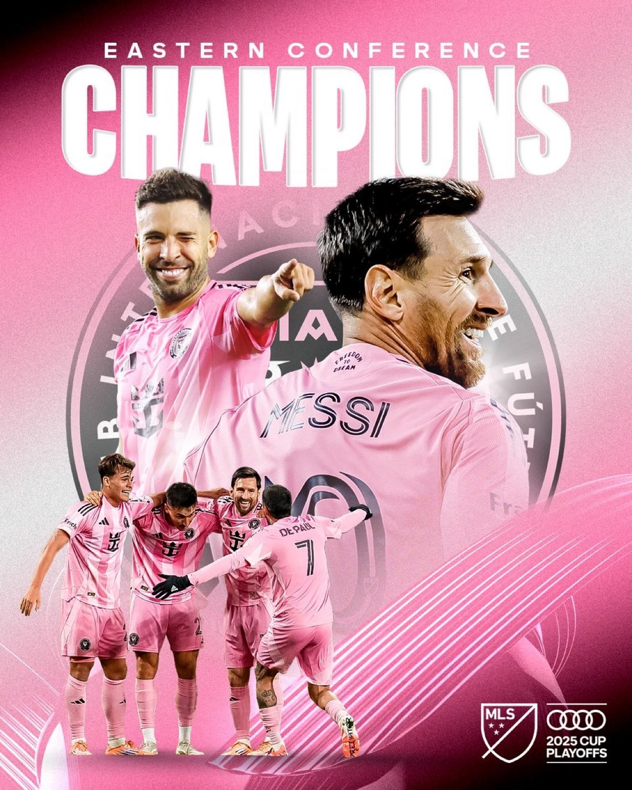 【迈阿密国际东部冠军&晋级总决赛决赛】🏆美职联季后赛东部决赛迈阿密国际vs纽约城 5:1,迈阿密国际获得东部冠军,同时晋级总决赛!!!!⚽阿连德帽子戏法(布教授、阿尔巴、布莱特助攻),梅西助攻马特奥破门,阿尔巴助攻塞戈维亚破门!👊总决赛对手将在12点左右得知(圣地亚哥VS温哥华白浪)!💥迈阿密国际历史首次夺得东部冠军,首次晋级总决赛!!!梅西迈阿密国际