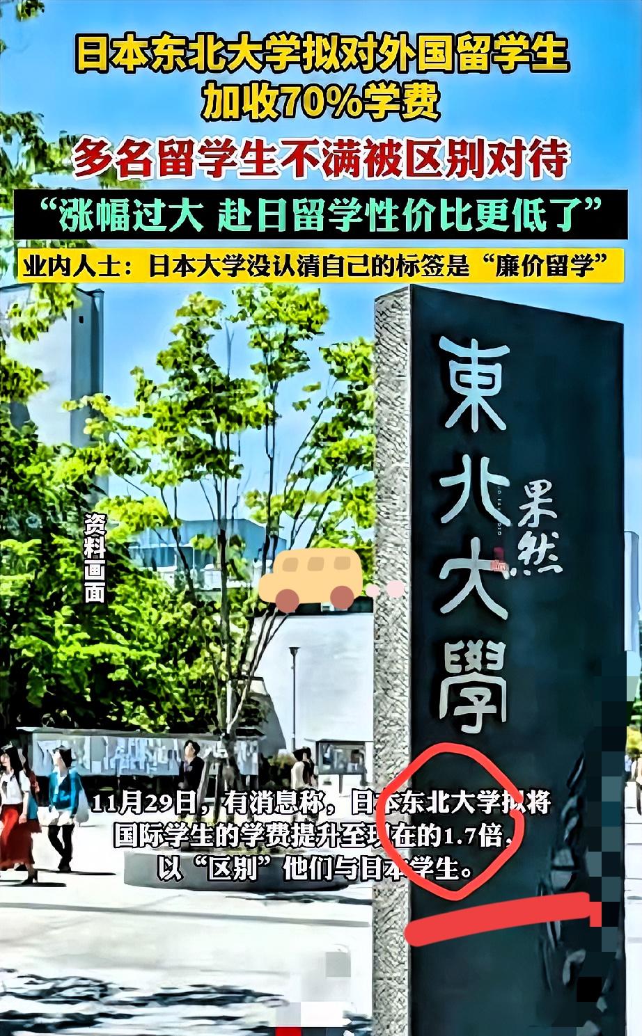 快讯!快讯! 日本的反制来了! 竟然是日本名校拟涨留学生学费70%,本土学生费用保持不变,一年多掏1.7万! 打着“提升服务”的幌子收割留学生,说白了就是把国际生当“摇钱树”,之前吹的“性价比留学”彻底翻车!现在中日关系紧张,安全预警都发了,这节骨眼还涨学费,分明是把人往外推,谁还敢往火坑里跳? 这波操作你觉得是缺钱急眼,还是故意排外?评论区聊聊!