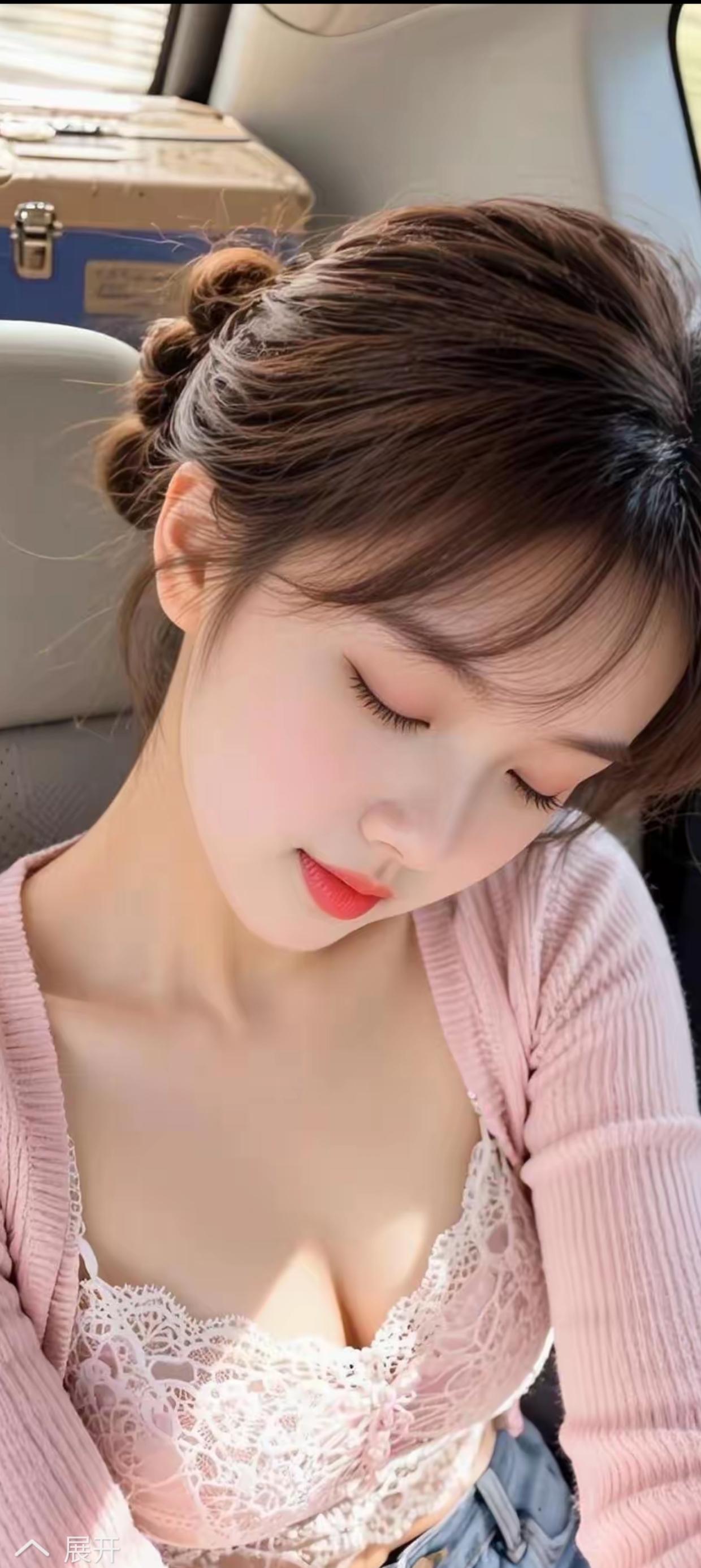 温柔甜美的车内自拍,粉色毛衣搭配蕾丝内衣,少女心满满!💖✨