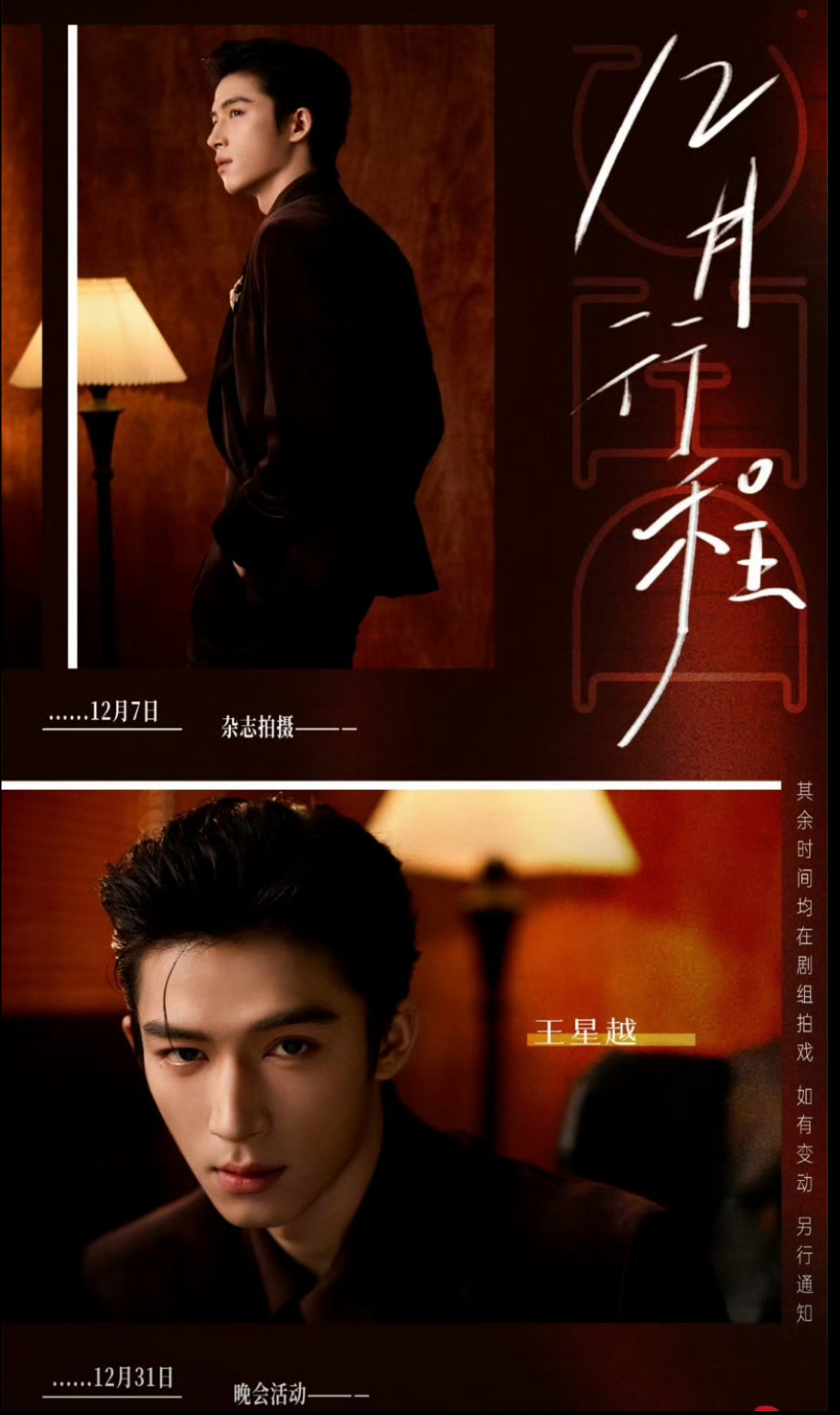 📣12月男明星首波行程图来了!王鹤棣 敖瑞鹏 侯明昊 王星越 曾舜晞 田嘉瑞 周翊然 丞磊 夏之光