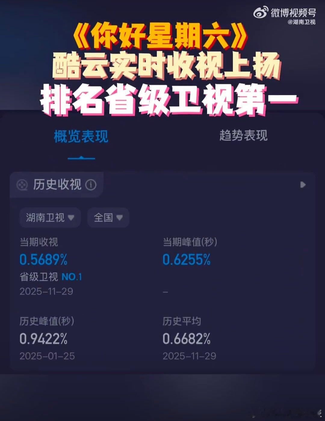 hi6收视第一你好星期六 酷云数据亮眼!平均收视0.5689,份额3.2244%拿下省级第一,连续48周夺冠的hi6,周末追剧首选没跑了~