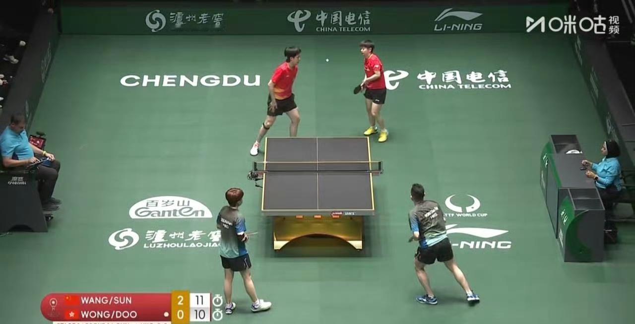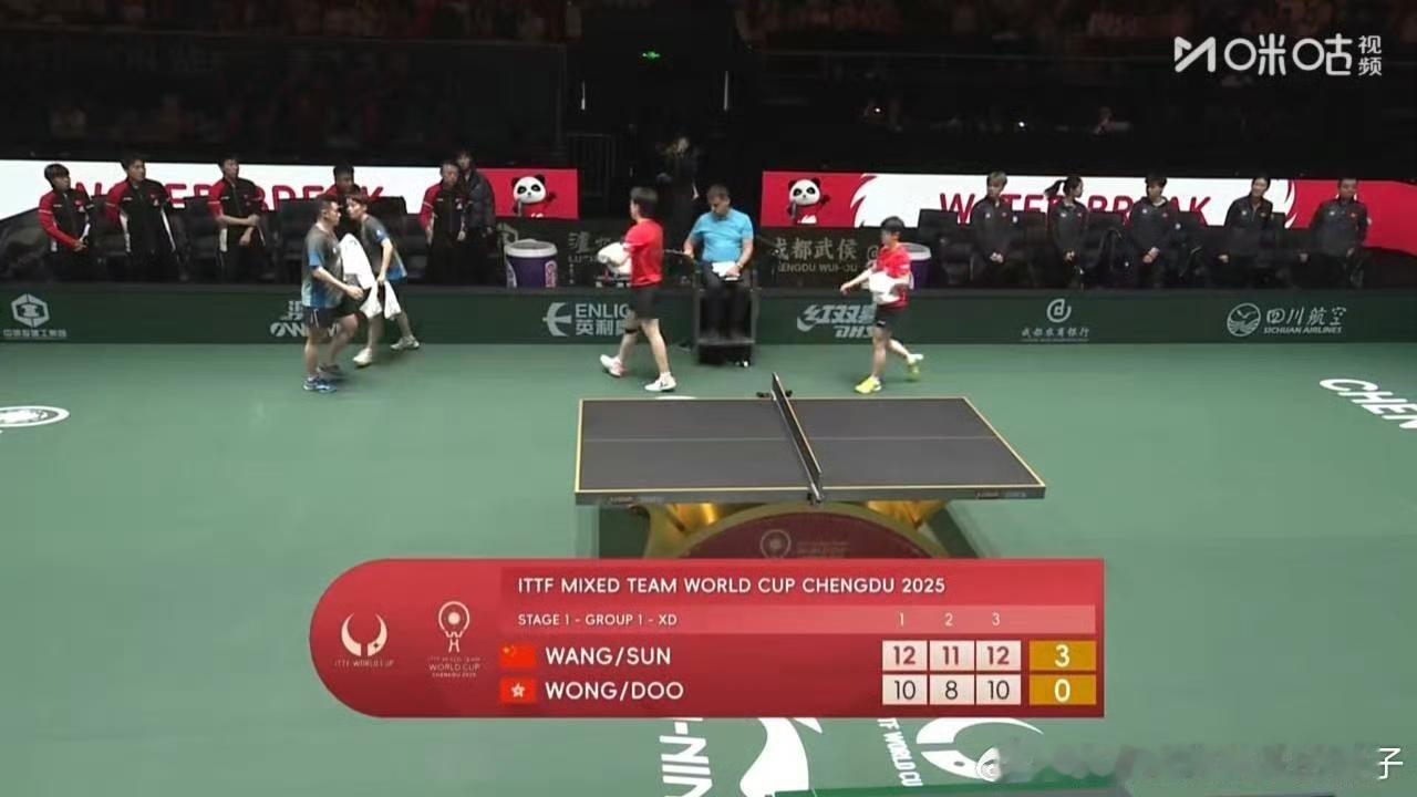 石头是要速战速决了[笑哭], 第三盘前两局林诗栋11-3,11-4先胜林兆恒! 这是205成都混团世界杯第一组中国队对阵港队的小组赛, 第一盘王楚钦/孙颖莎3-0击败港队经典组合黄镇廷/杜凯琹,得3分, 第二盘蒯曼2-1击败朱成竹,得2分,失1分, 目前🇨🇳中国队5-1领先中国香港队🇭🇰! 此刻林诗栋已经得了2分了,再完胜一局就可积8分全场获胜[奋斗]! 小石头加油[奋斗]!