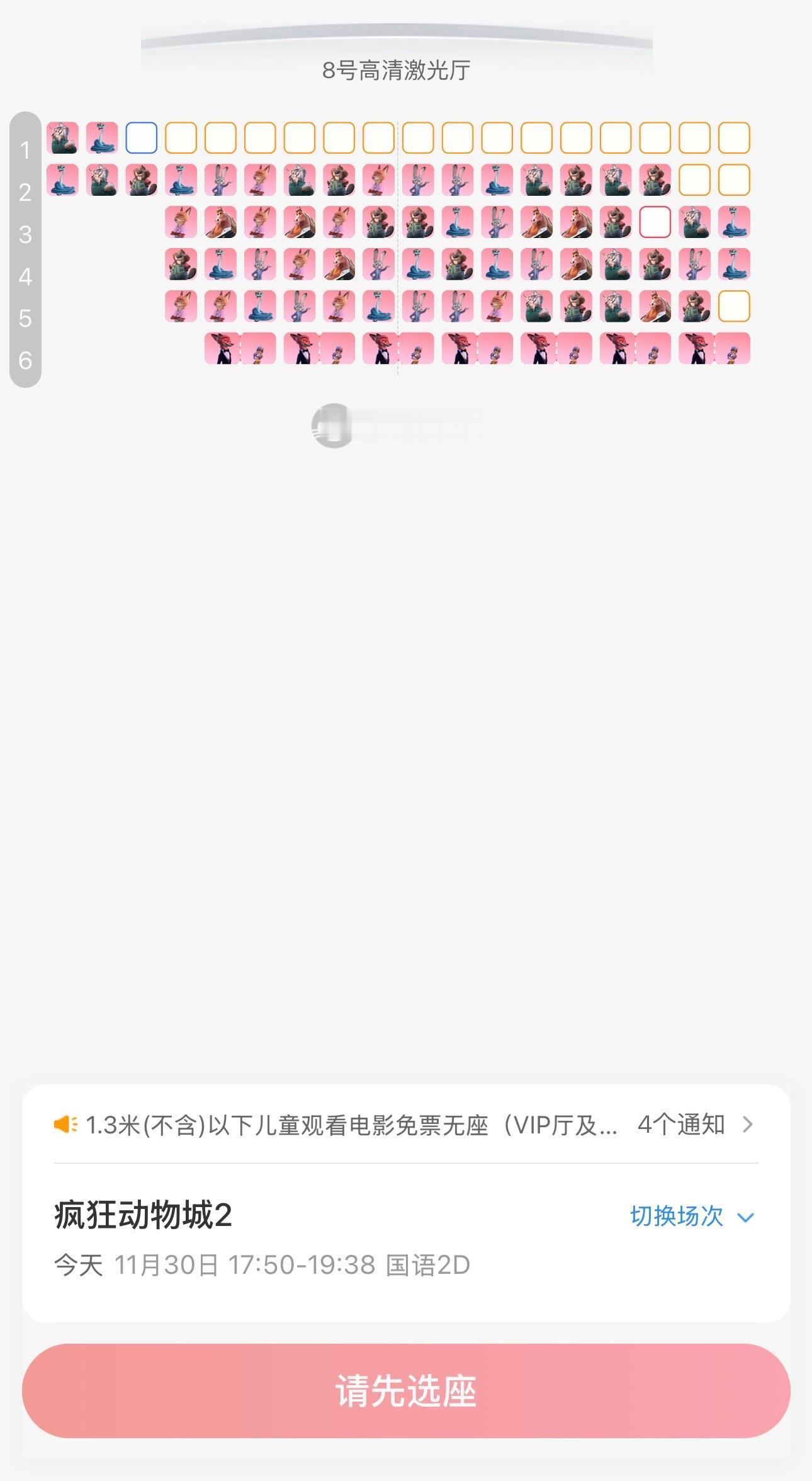 晚上想带妹妹去看个疯狂动物城幸好提前看了下票不然都没地儿。提前看还选不到好座呢。