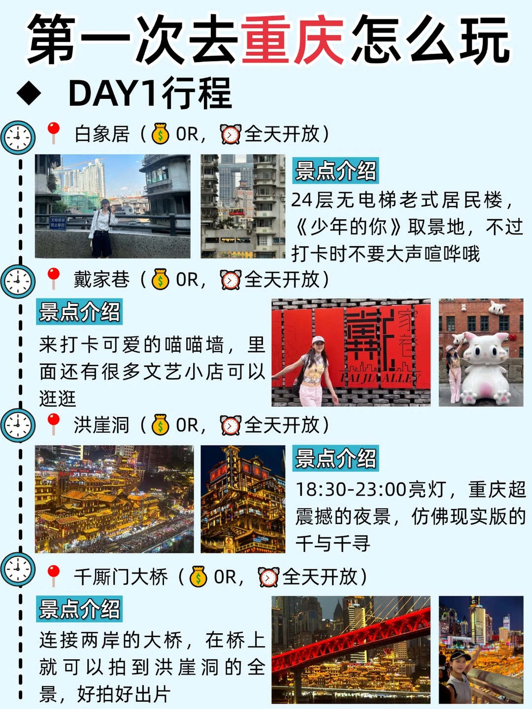 想来重庆的姐妹们👭千万别把顺序搞反了!!一定要认真看👀这篇本地人熬夜整理的4日游攻略,希望对你们可以有帮助~