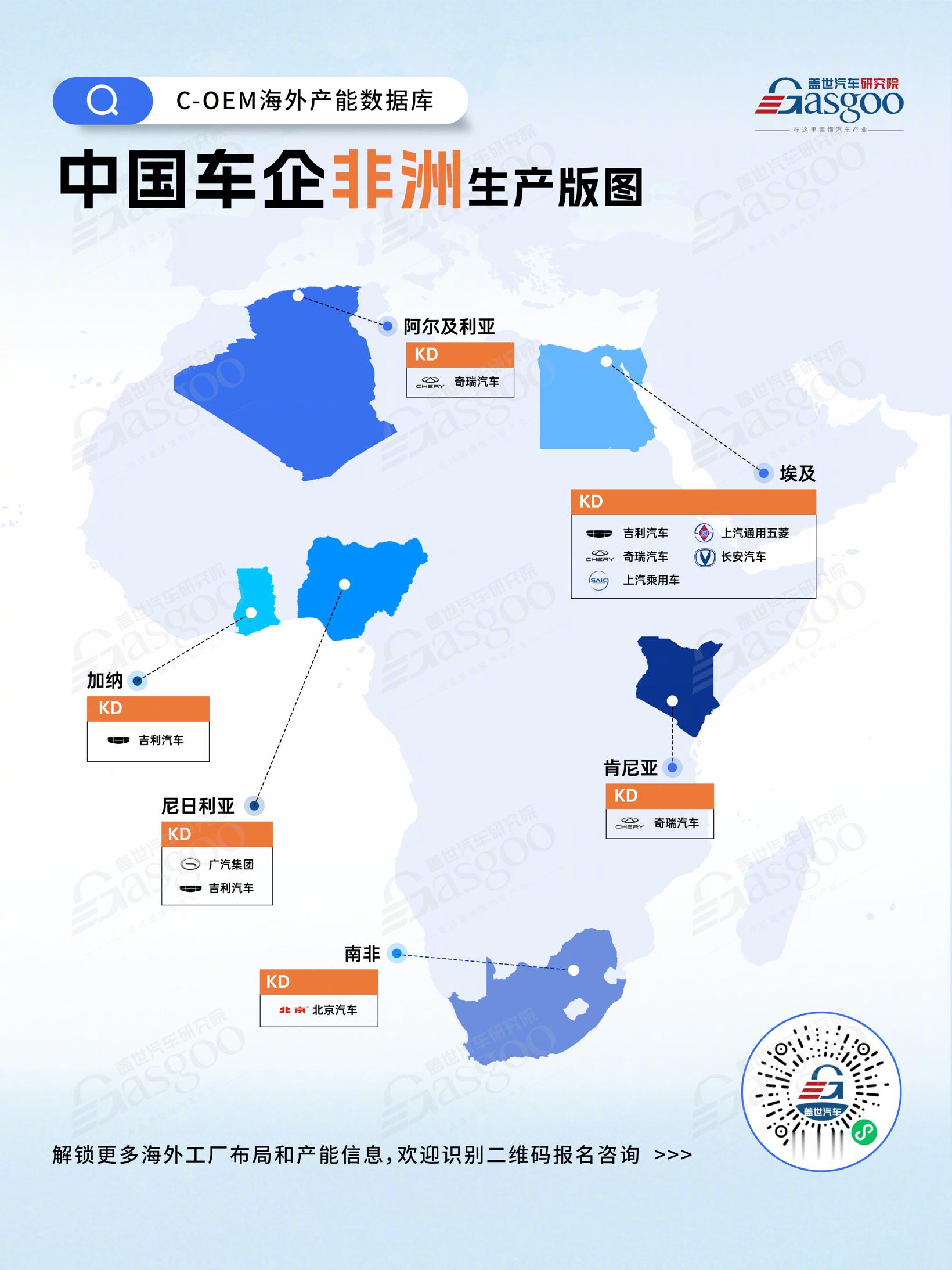 前两张图是中国企业在非洲建立的汽车制造厂:零部件工厂主要集中在南非、摩洛哥和埃及,散装组装厂已经遍布非洲,埃及和南非是中国汽车企业的主要投资目的地。前些天的南非G20峰会用车是长城汽车的坦克500,由是观之,其实长城汽车已经是后来者了,非洲市场已经被中国车企抢占得差不多了,当然,欧美和日本车企在非洲的份额估计也被中国人挤占得差不多了。作为制造业龙头产业,汽车业对区域市场具有绝对性颠覆能力,中国汽车品牌在非洲起来了,会带领中国其他产业的强势兴起,现在看,中国车企在非洲和南美洲的起势都相当不错,在俄罗斯和东南亚就更不用说,现在主要是对美欧和日韩这些传统汽车强国的本土市场还处于早期攻坚阶段。中国汽车企业被诟病多的是市场大但利润少,我觉得这是开拓市场时期必然的结果,新兴品牌根本不可能获得高利润,能以低利润获得大市场就是大赢。当然,我还是认为,中国应该借着这次高市早苗闹出来的风波,狠狠地打击日本车企,可以把日系车都从中国市场完全清理出去,这样丰田本田日产的收入就会大为减少,中国车企的收入也会上升,增加自己的实力——而且,日本车无论是技术上还是品牌上都已经处于劣势了。对!对日本要实施“百年压制”,如果先从丰田汽车开刀会是个很不错的开局。
