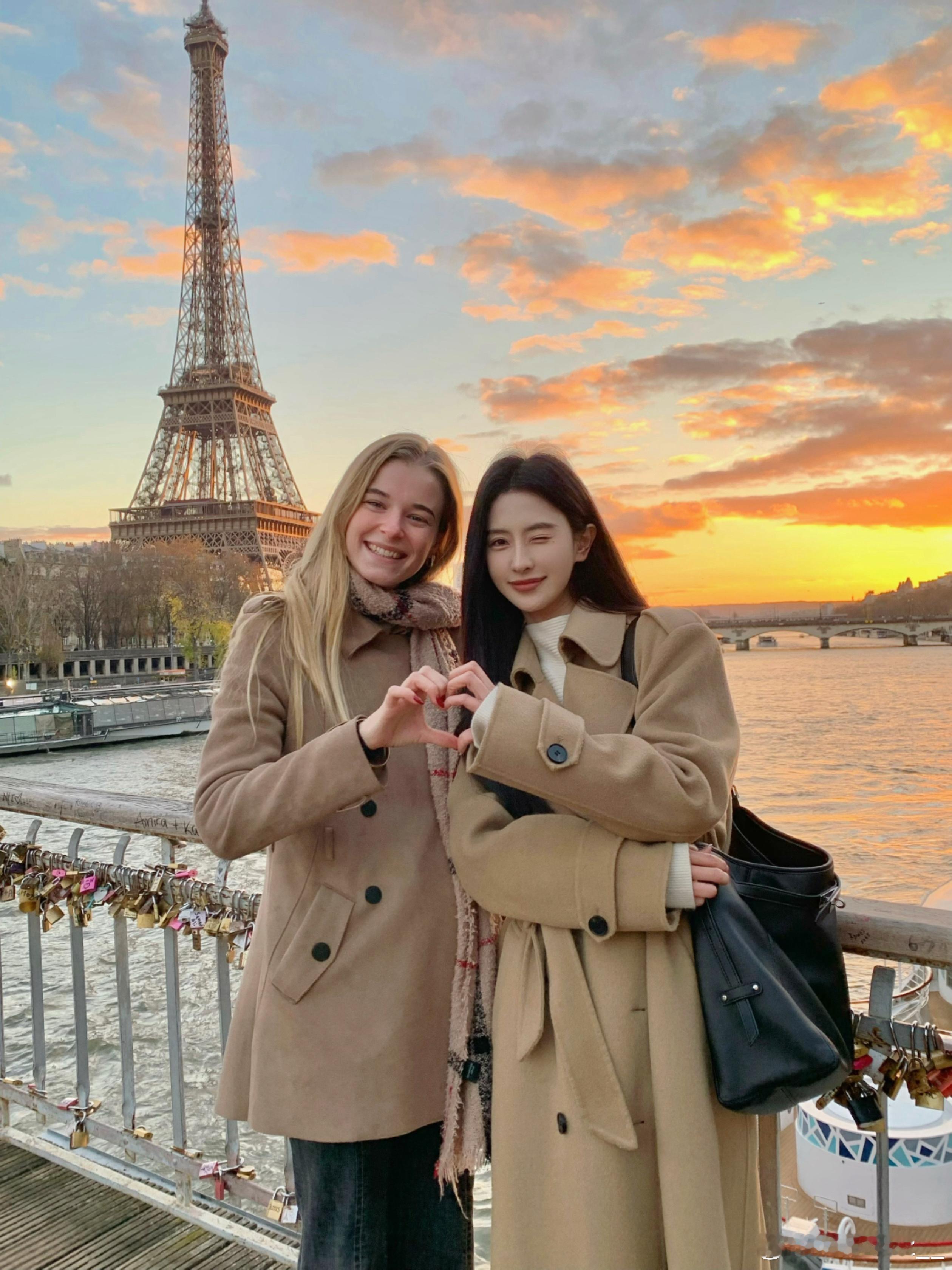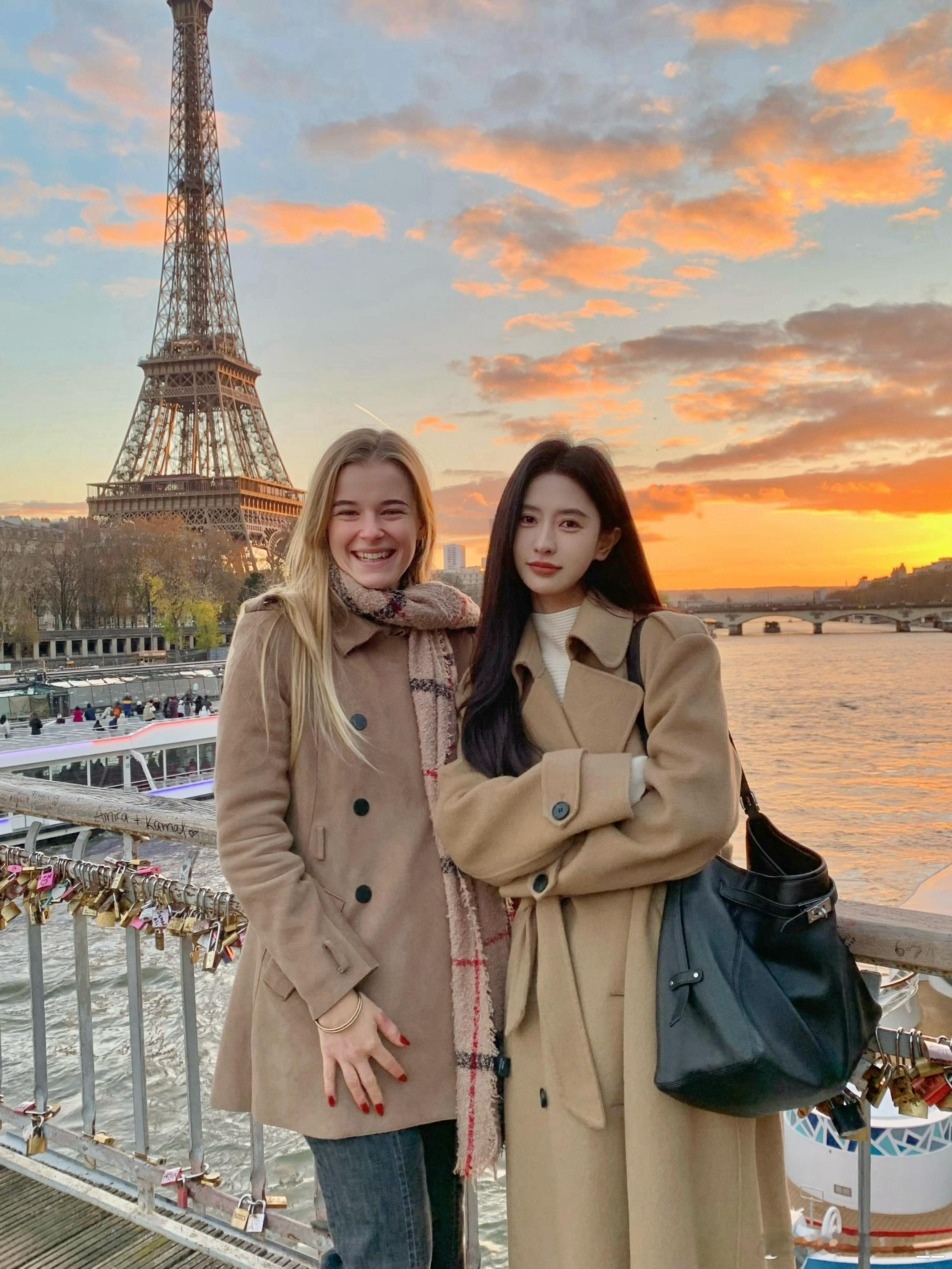 旅行中那些不可复制的瞬间本来前一秒还在塞纳河的游船上懊恼突逢下雨,下一秒就遇到了巴黎难得的绝美落日,偶遇了一位陌生漂亮的法国小姐姐,还拍了合照,女孩子就是很美好呀 法国·巴黎