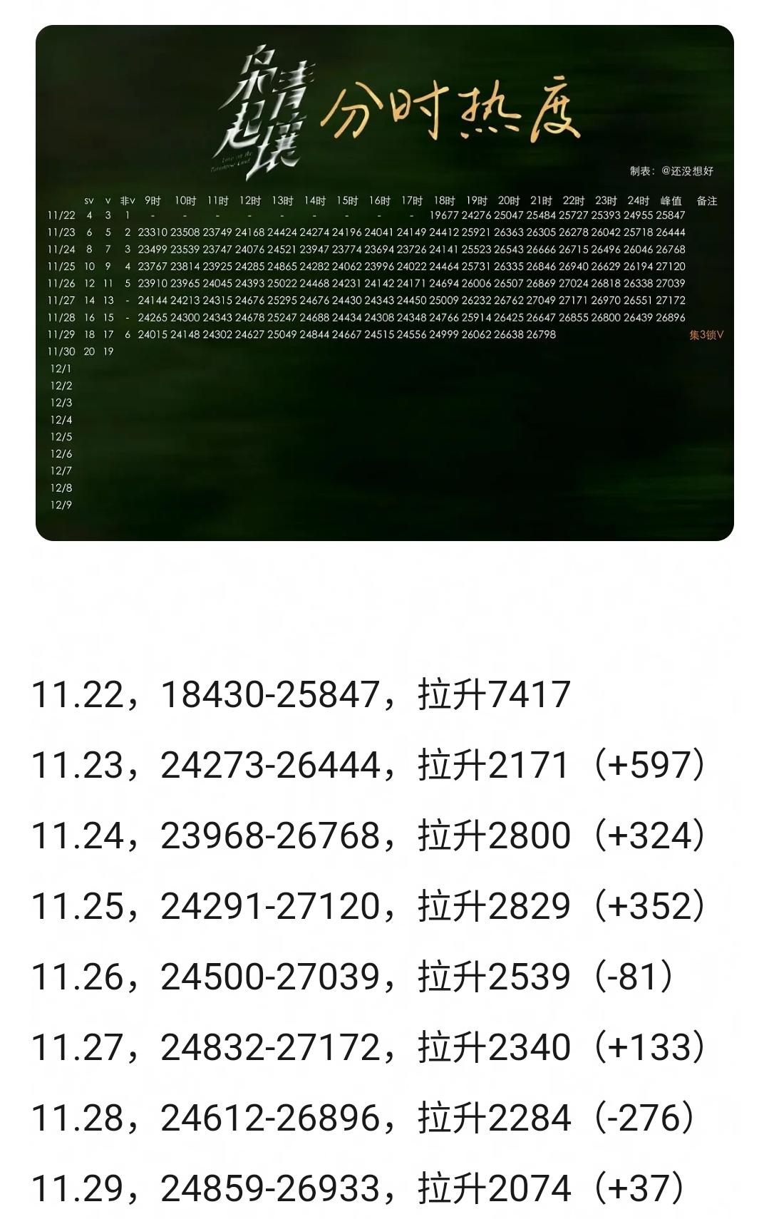 迪丽热巴陈星旭《枭起青壤》播放热度不如预期! 《枭起青壤》按说是尾鱼最受欢迎的一本小说,但站内热度破27000只有三天,截止到今日22:00,热度最高在26662。作为上了必看榜单的一部剧,没想到热度跟集均都不如预期。 冲着热巴颜值,看了前十集,感觉导演编剧都不行,整个剧情拍得又长又乱,现在大家看剧如果第一集剧情节奏不能留住观众,那么自然播放不如预期! 数据来源:db视组 迪丽热巴 陈星旭
