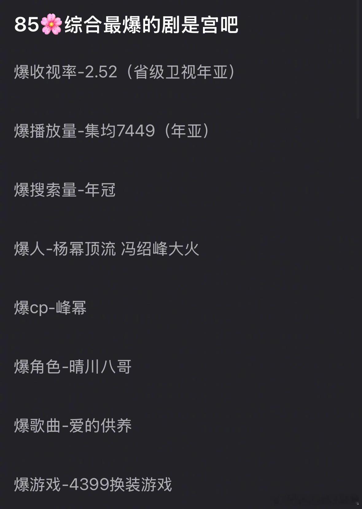 85🌸综合最爆的剧是《宫》吗?