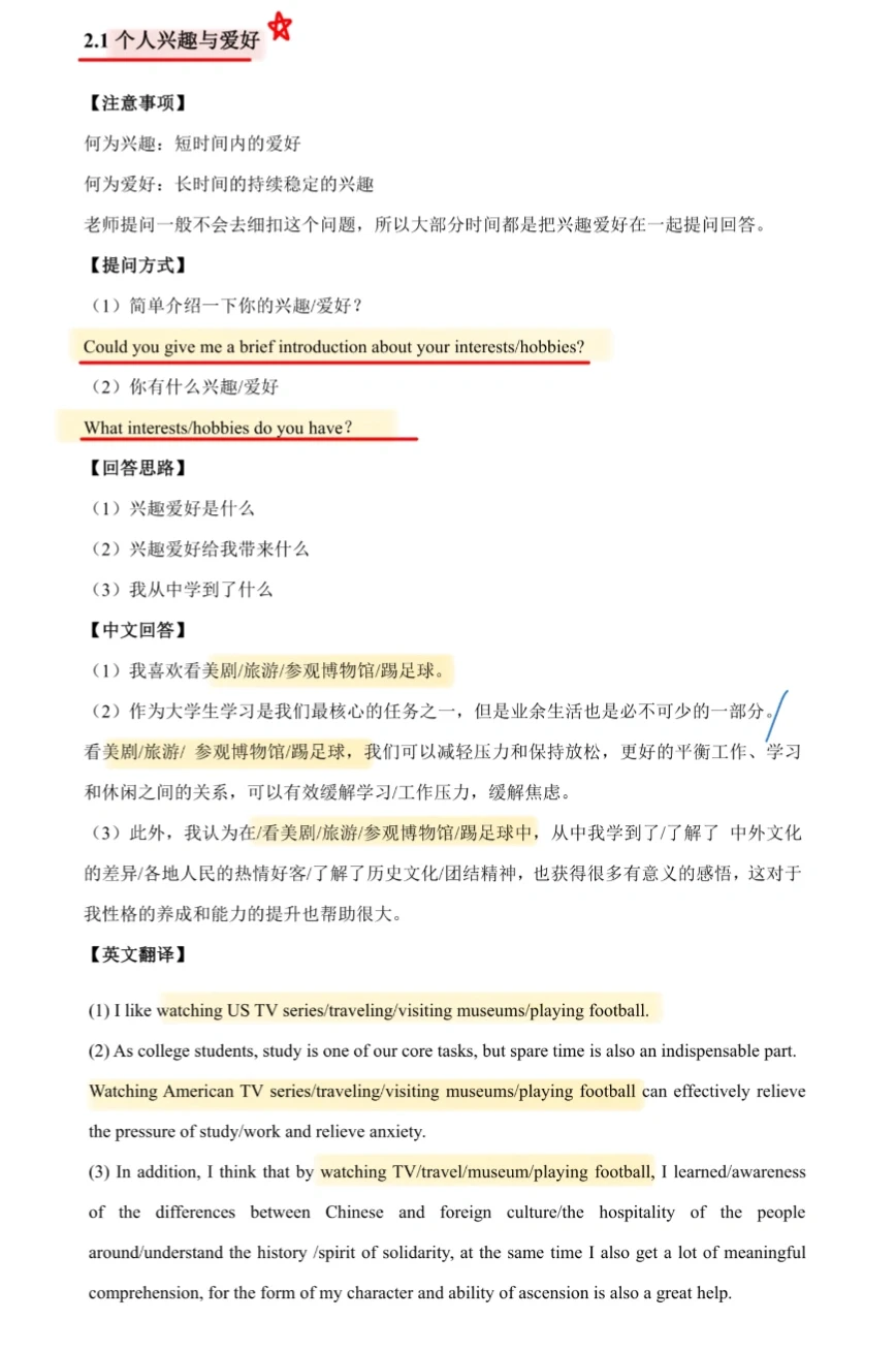 (1)Could you give me a brief introduction about your interests/hobbies?