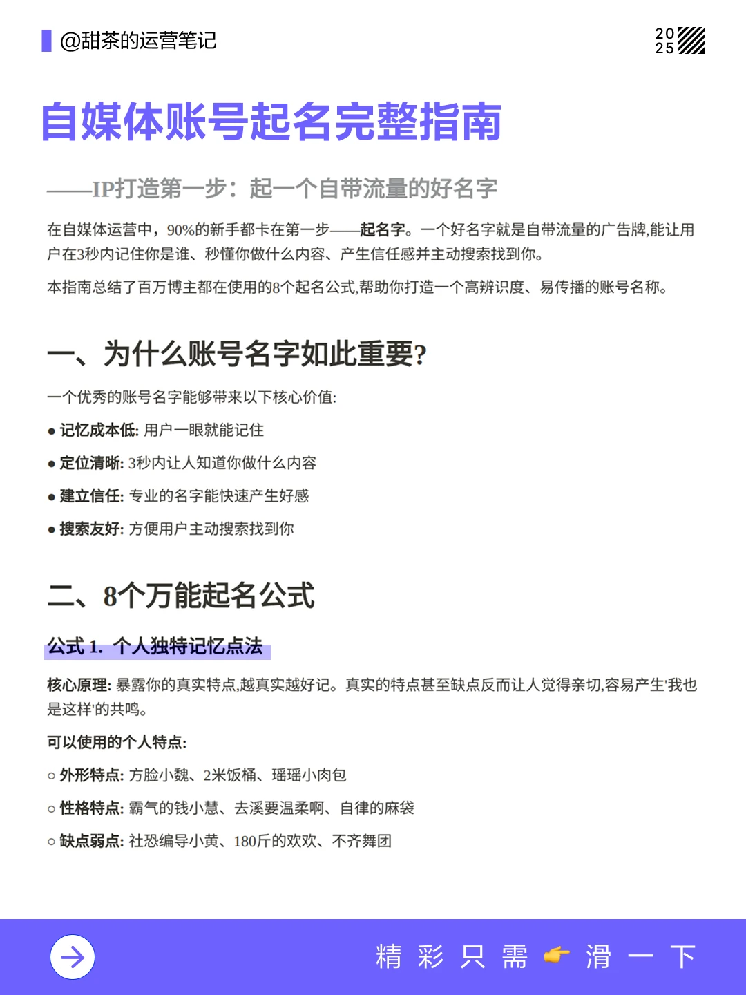 今天我把百万博主都在用的8个起名公式全部整理出来了,建议收藏!