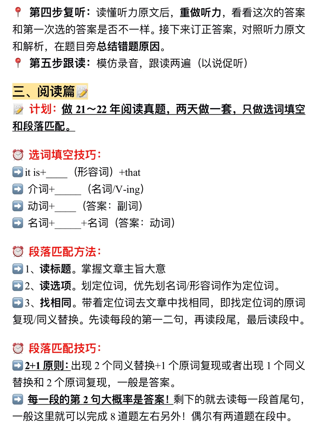 📝 计划:做21~22年阅读真题,两天做一套,只做选词填空和段落匹配。
