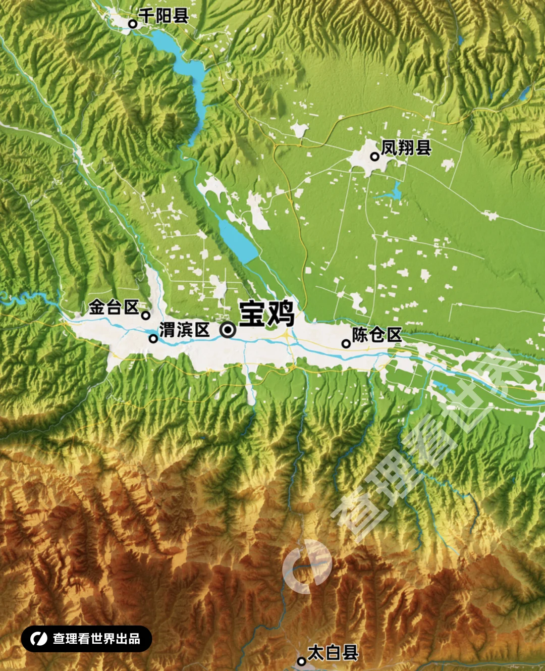 古时宝鸡称为陈仓、雍城,西虢(guo)、西岐等。宝鸡地处关中平原西部,也称西府,地貌为南北西三面环山。渭河自西向东穿城而过,西边是天水市,东边是西安市。 唐代时,因 “陈仓” 谐音 “沉仓”,被认为寓意不吉,加之民间仍流传 “宝鸡” 的祥瑞传说,正式定名 “宝鸡” 并沿用至今。这里的 “鸡” 并非普通家禽,而是上古神话中代表吉祥、预警的神鸟。古人认为神鸡啼鸣能驱邪避凶、昭示太平,将地名与 “宝鸡” 绑定,本质是对地域祥瑞的期许,也让这一名称承载了深厚的文化寓意。 ★原创地图内容谢绝转载★