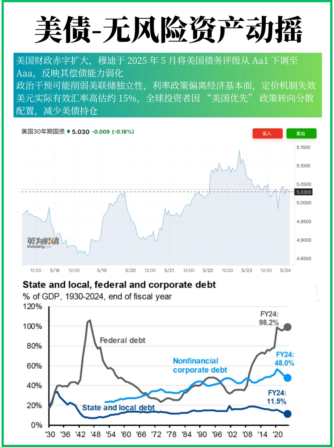 最近的比特币和黄金的飙升,一定程度上是机构投资者在分散化投资上的新动作,去美债,去债务资产,寻求新的多样化配置。 另外就是机构对于基础设施类投资,信贷业务的重视程度愈发提高。没有什么是一成不变的,只不过是没到临界点罢了。